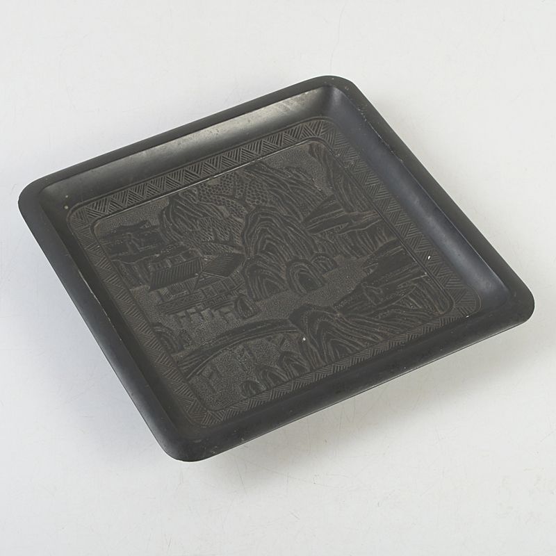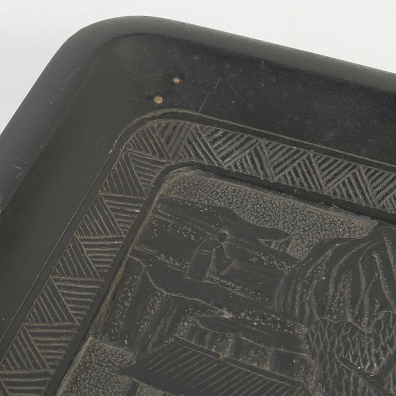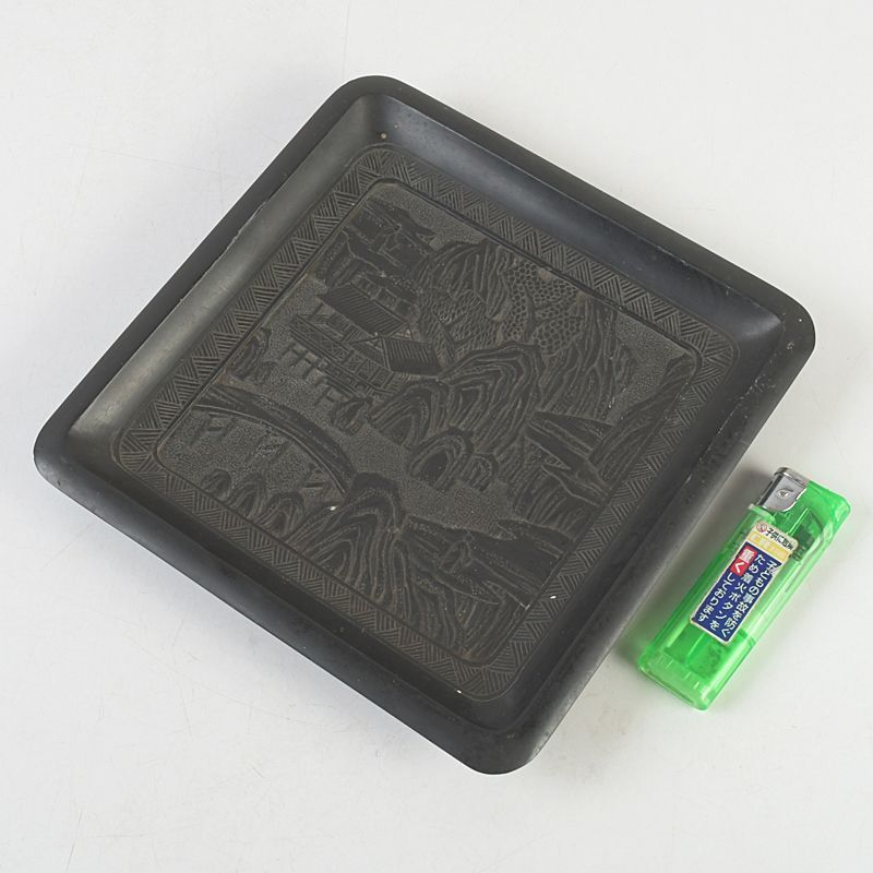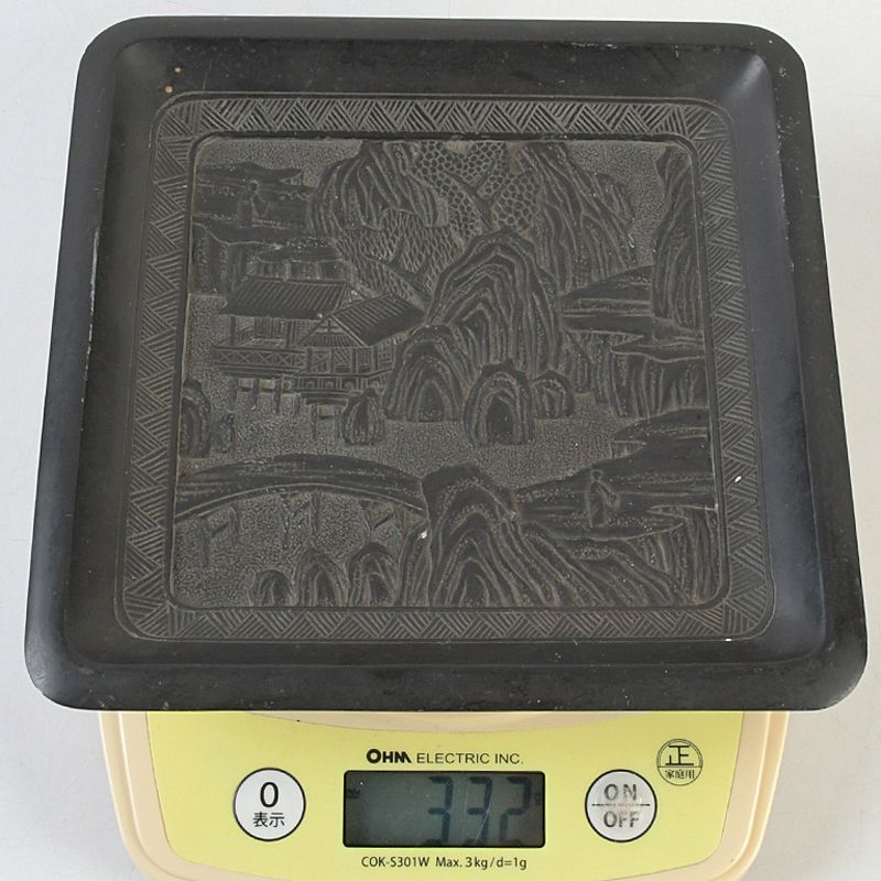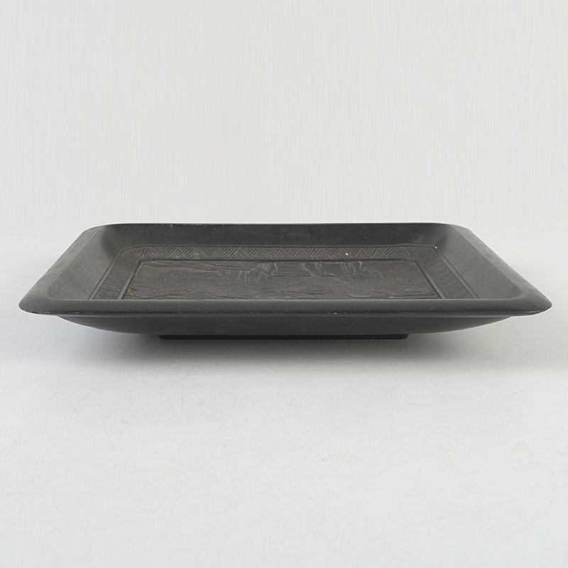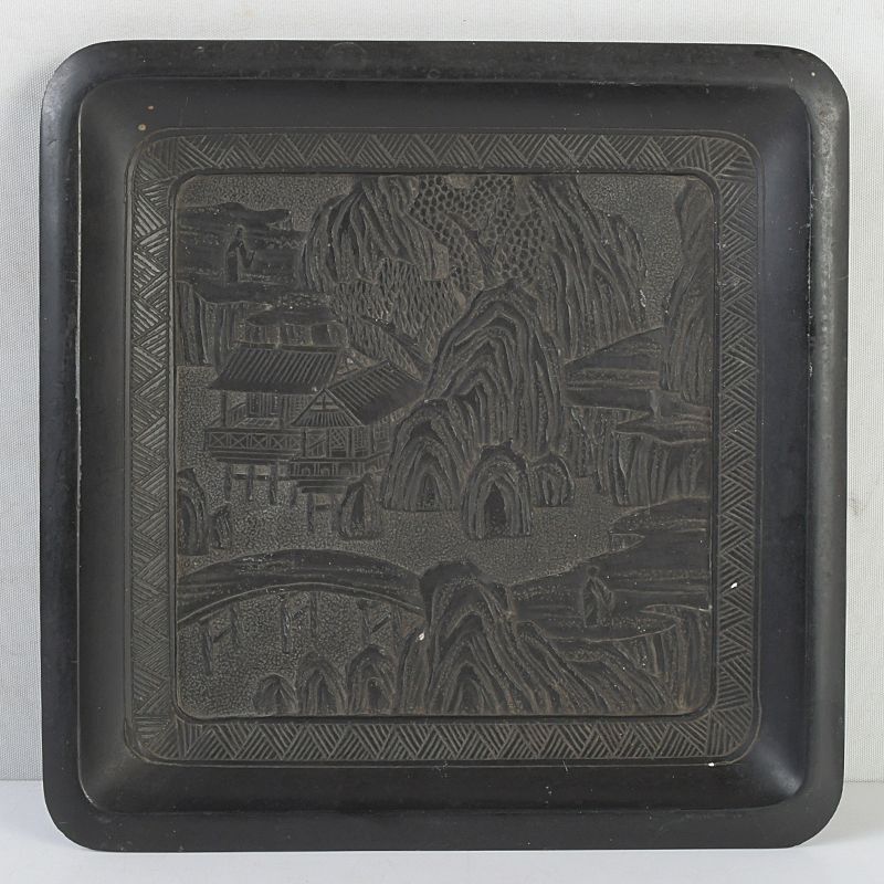 中国 古銅 山水彫 四方盆 香盆 C S352