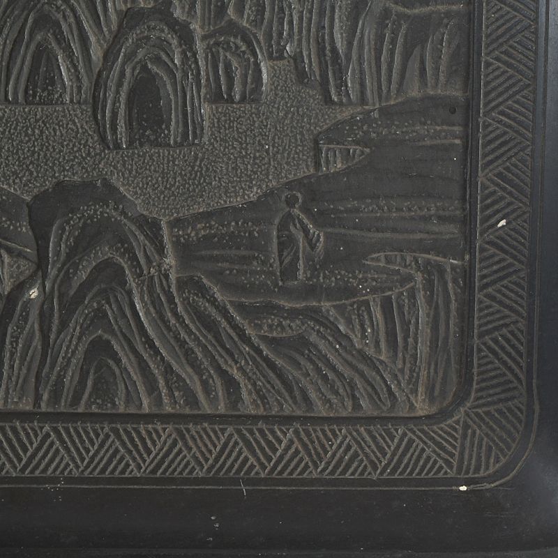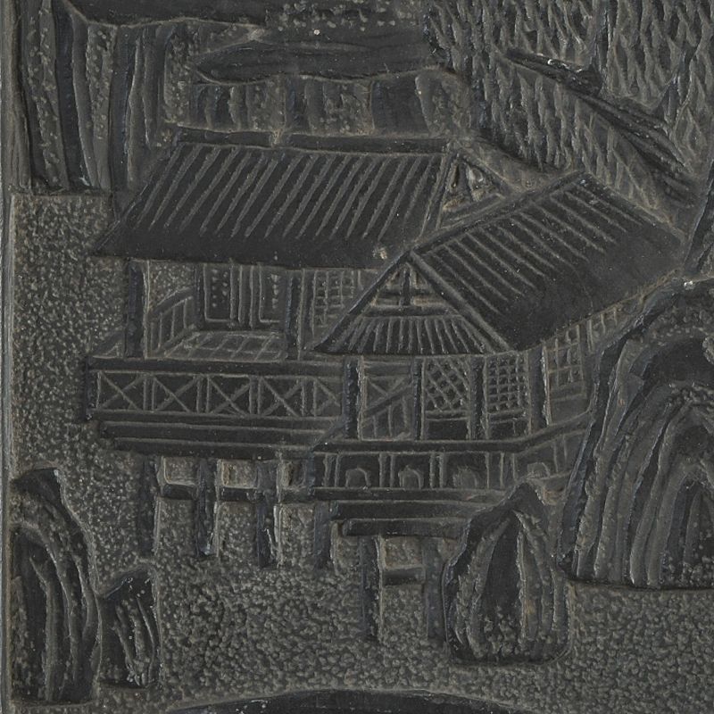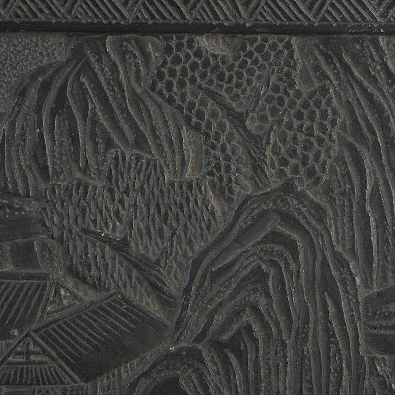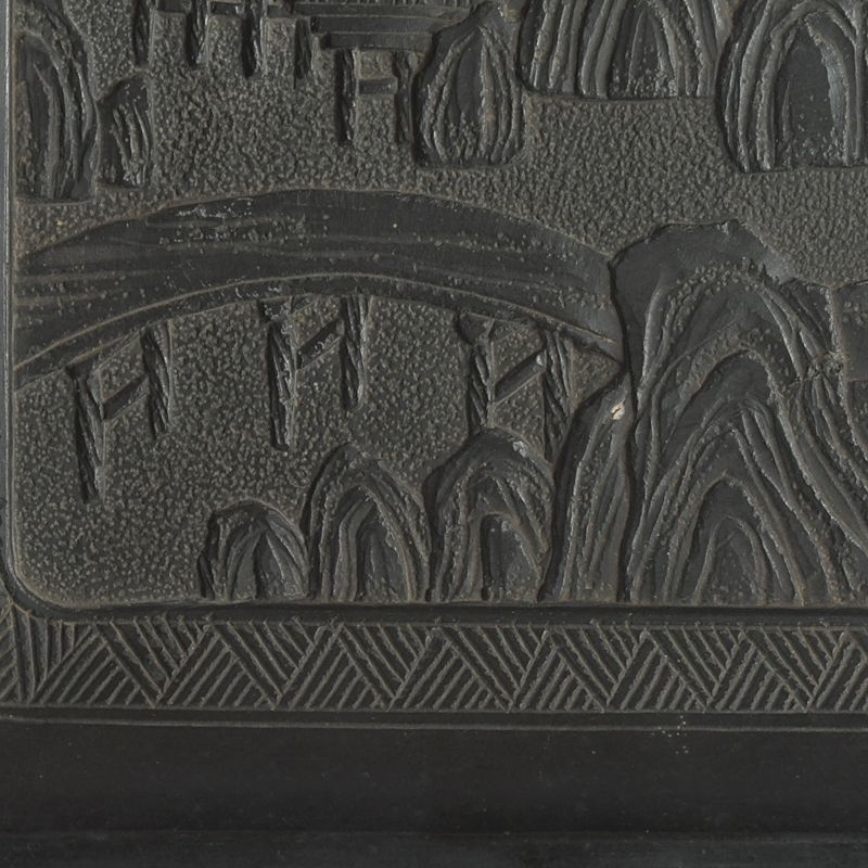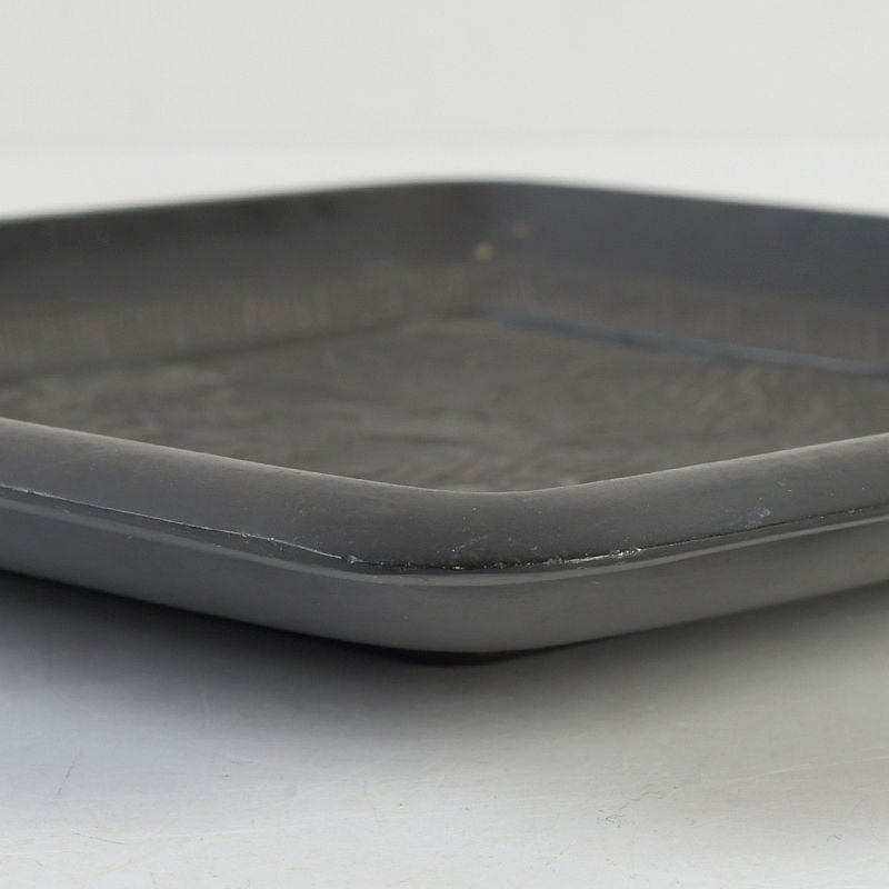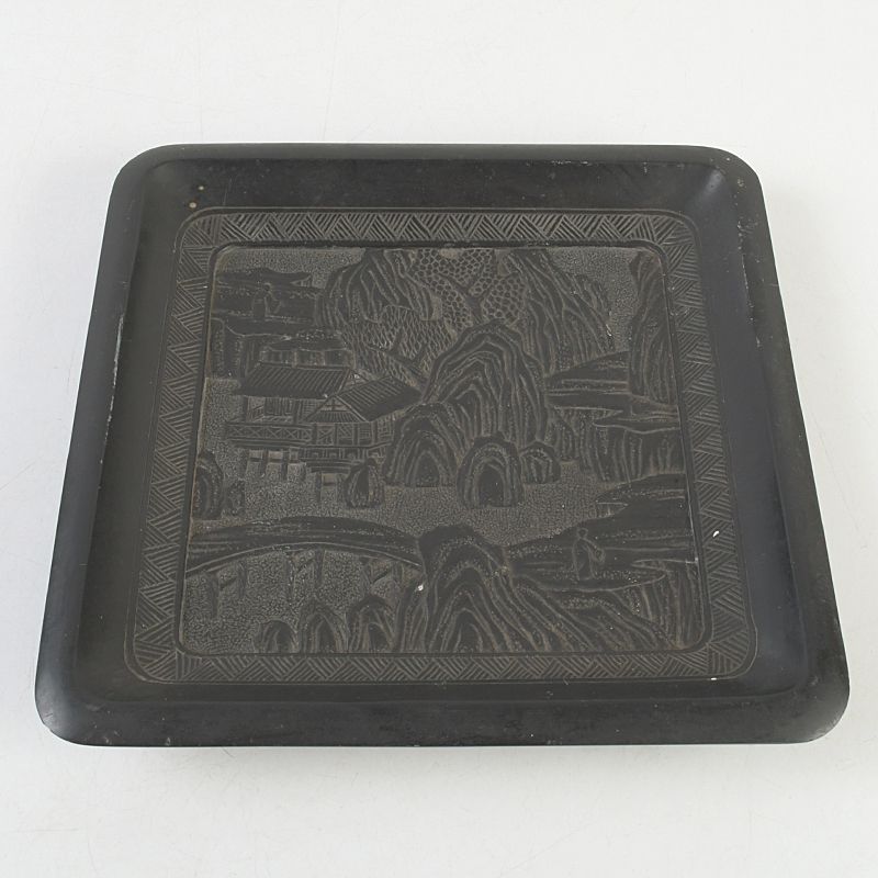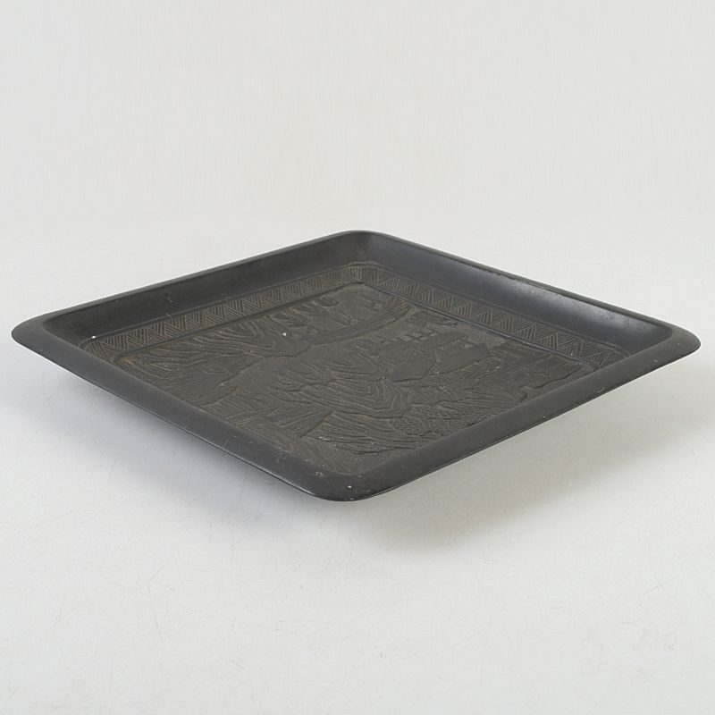 中国 古銅 山水彫 四方盆 香盆 C S352