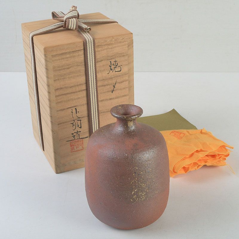 萬古焼 八幡窯 堀野証嗣作 焼〆 徳利 共箱 C S356
