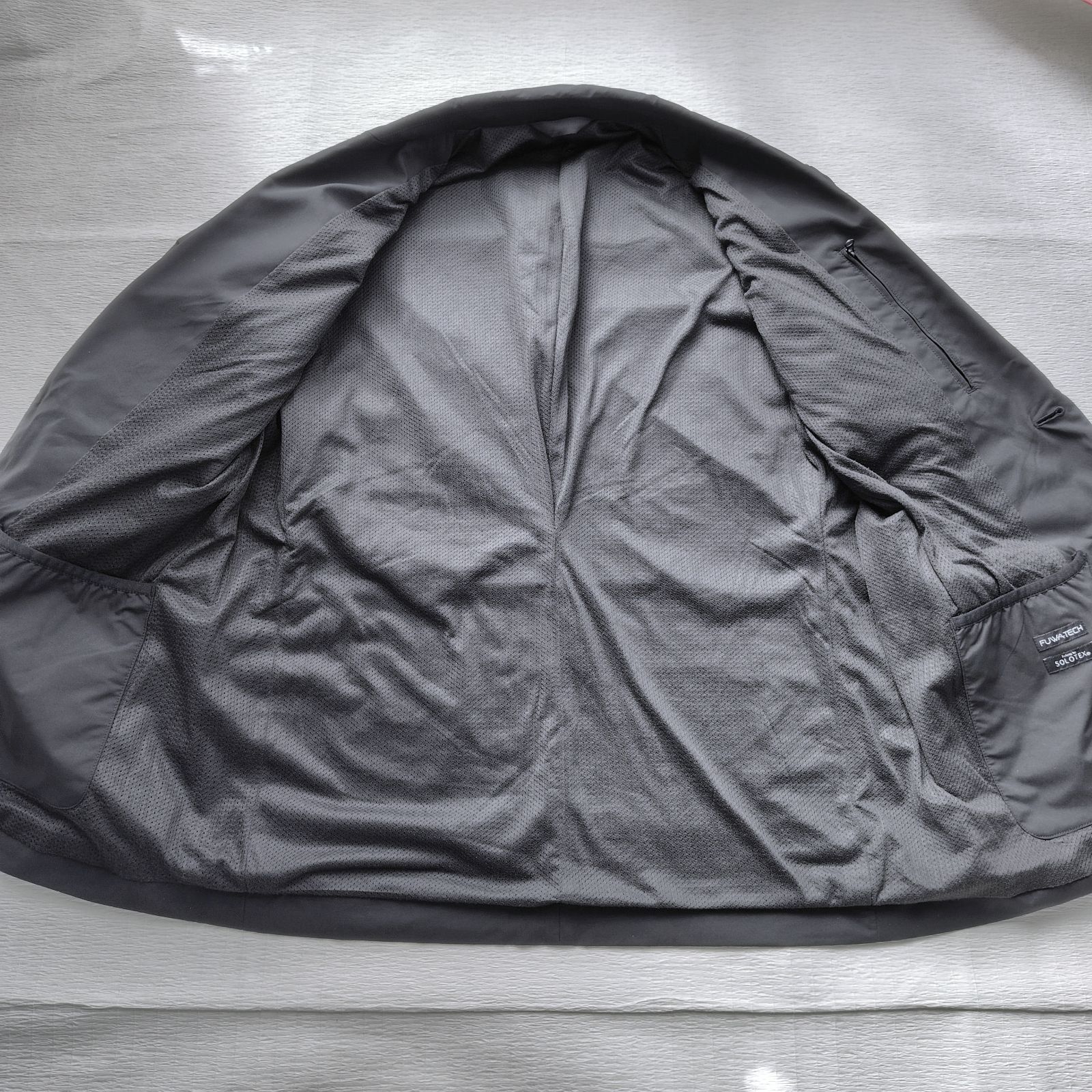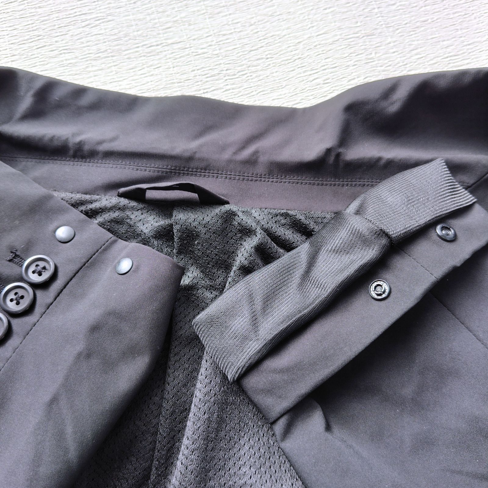このジャケットを羽織れば、自転車通勤から、休日のドライブ、長時間の移動まで、あらゆるシーンをストレスフリーに過ごせます。アンコン仕立てなので、カーディガンのように気軽に羽織れ、Tシャツやニットと合わせるだけで、清潔感のあるスマートなスタイルが完成しますよ。