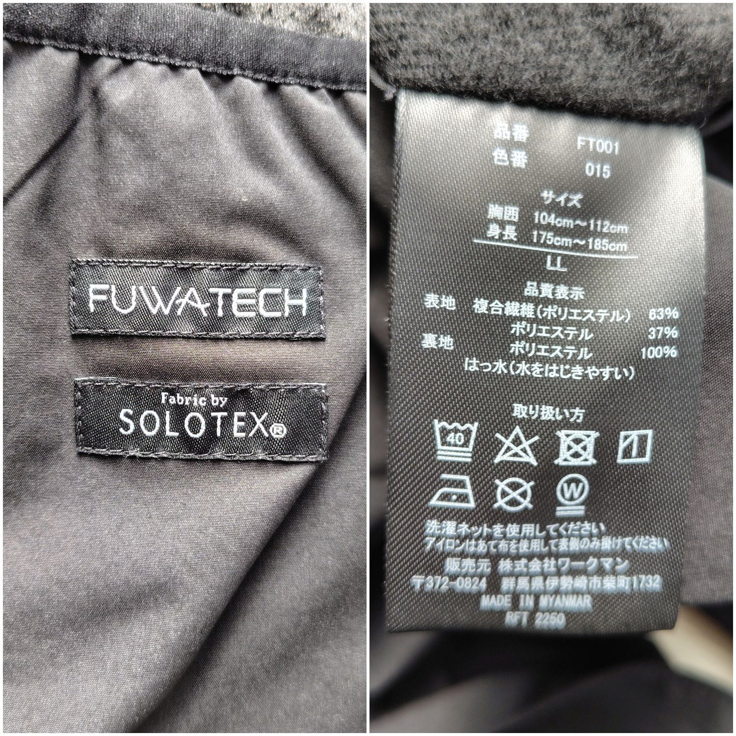 表地には、帝人が開発した高機能素材「SOLOTEX」を採用。 しなやかなストレッチ性、シワになりにくい形態回復性、そしてソフトな肌触りが特徴です。裏地には、ワークマン独自の軽量保温素材「FUWATECH」を使用。 軽やかでありながら、肌寒い季節にも対応します。撥水性も備え、まさに才色兼備な一着です。