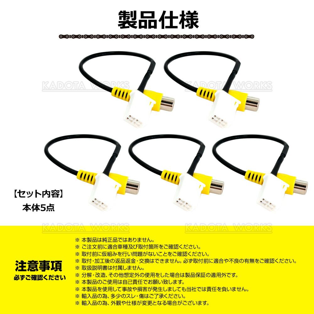 バックカメラ変換ケーブル RCH001T互換 15cmタイプ 5本セット