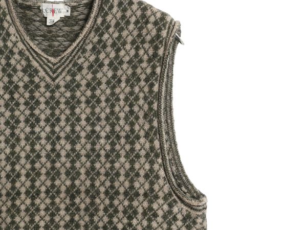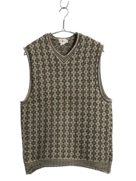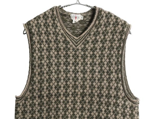 90s ジェイクルー アーガイル ウール ニット ベスト メンズ レディース M / オールド Vネック プルオーバー セーター 総柄 重ね着 シンプル