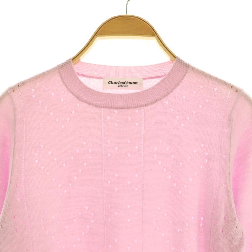 【商品名】シャルルシャトン Charles Chaton ハートカットワークデザインクルーネックニット セーター 長袖 ピンク /MY ■OS ■SH
