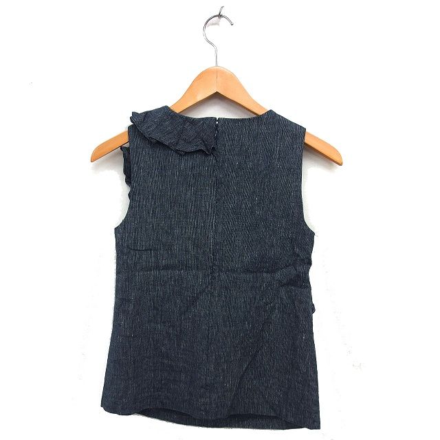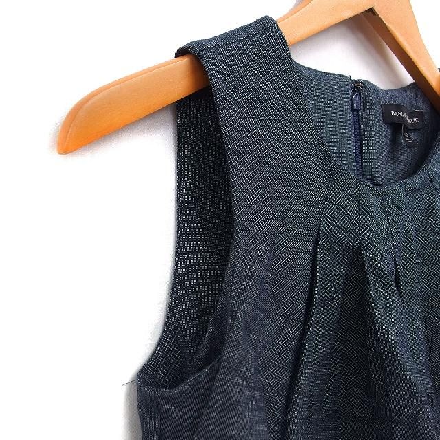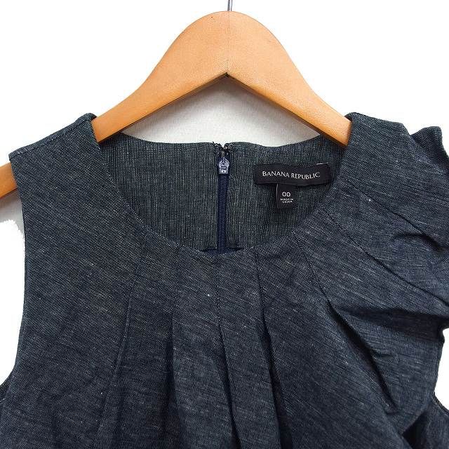 【商品名】バナナリパブリック BANANA REPUBLIC フリル ブラウス リネン混 タック ノースリーブ コットン混 00 紺 ネイビー /NT11