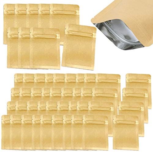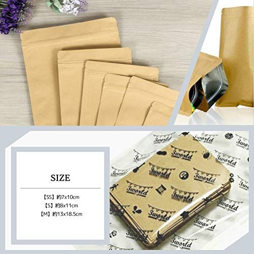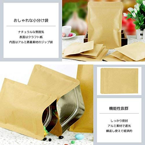 【数量】100枚表面はクラフト紙、内面はアルミ蒸着素材のジップ袋です。