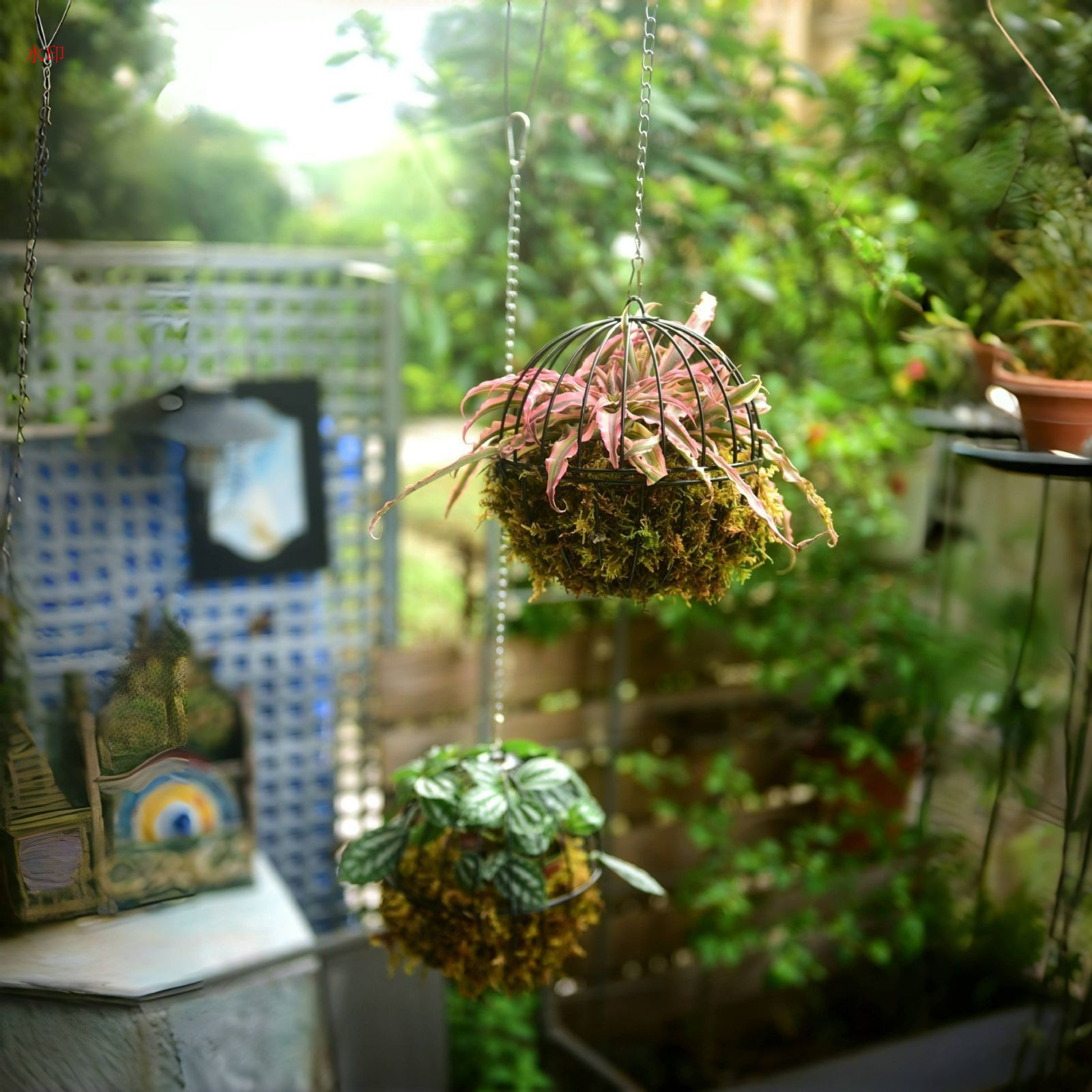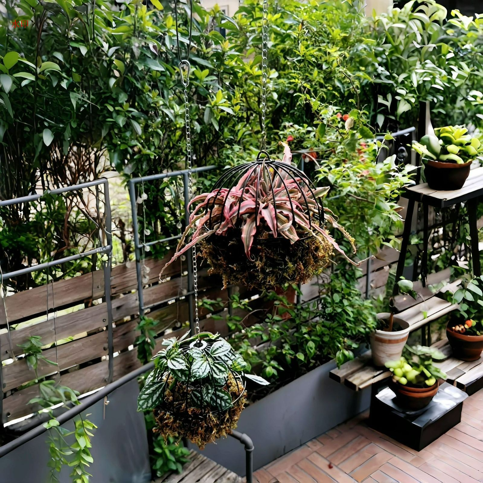 金属製の球体は、植物を美しく引き立てるだけでなく、インテリアのアクセントとしても最適なアイテムです。このスタンドは、特にハンキングプランツや小さな花々を飾るのに適しており、空間に緑を取り入れる楽しさを提供します。