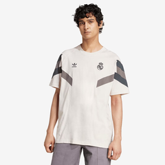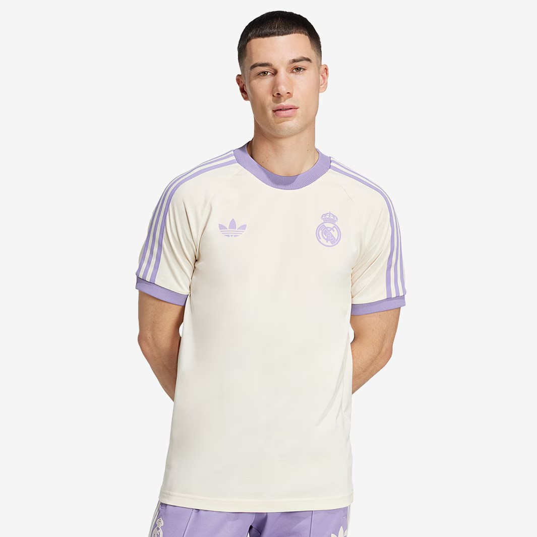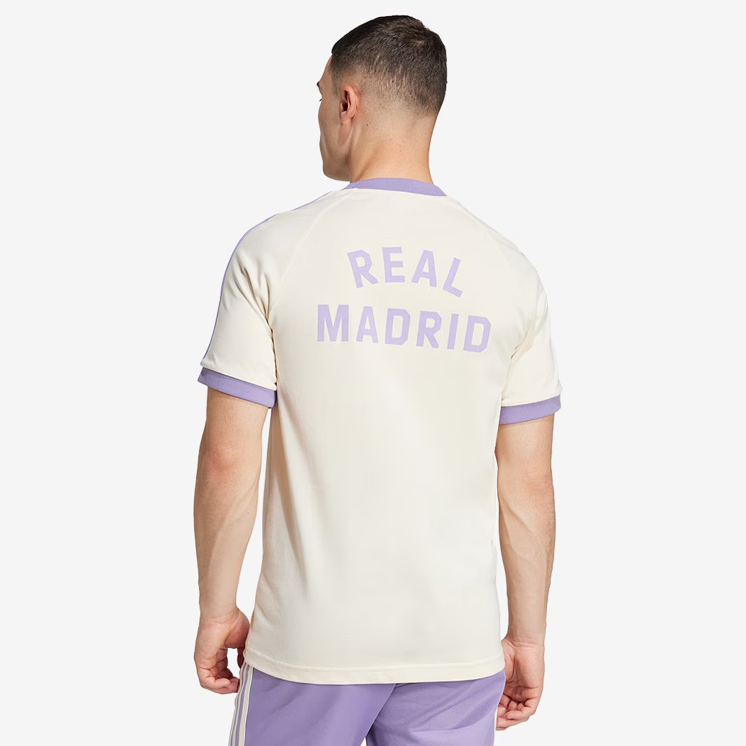 スペインの強豪、レアル・マドリードCFのオリジナルスレンジのTシャツです。ワンダーホワイト/マジックライラックのカラーリングで、クラブの伝説的なチームを祝い、古くからのファンに最適なスタイリッシュなレトロTシャツです。