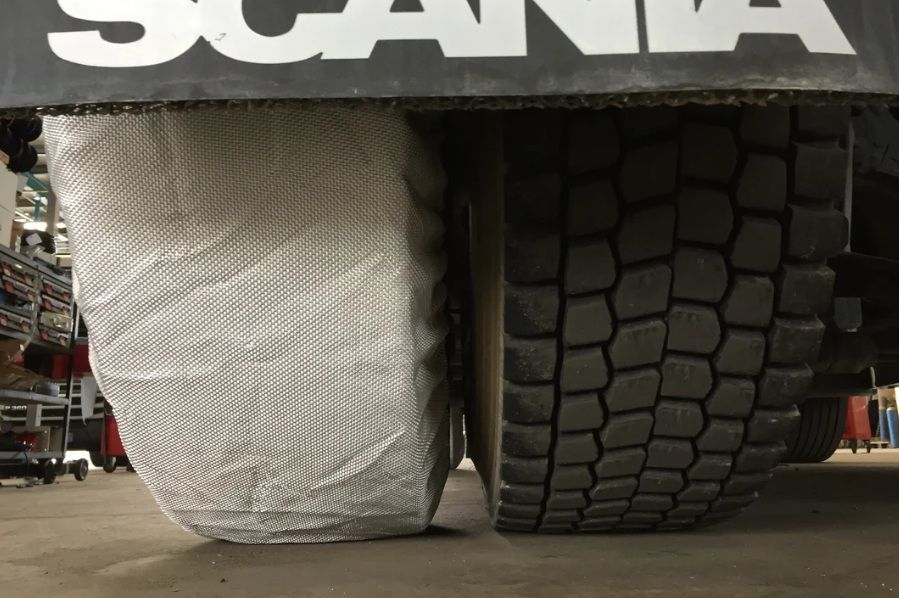 イッセ・スノーソックスの使用方法はとても簡単です。タイヤにカバーのように被せていきます。 タイヤ半分に被せ終わったら、クルマを少し移動させ、残りの半分にもしっかりと被せます。