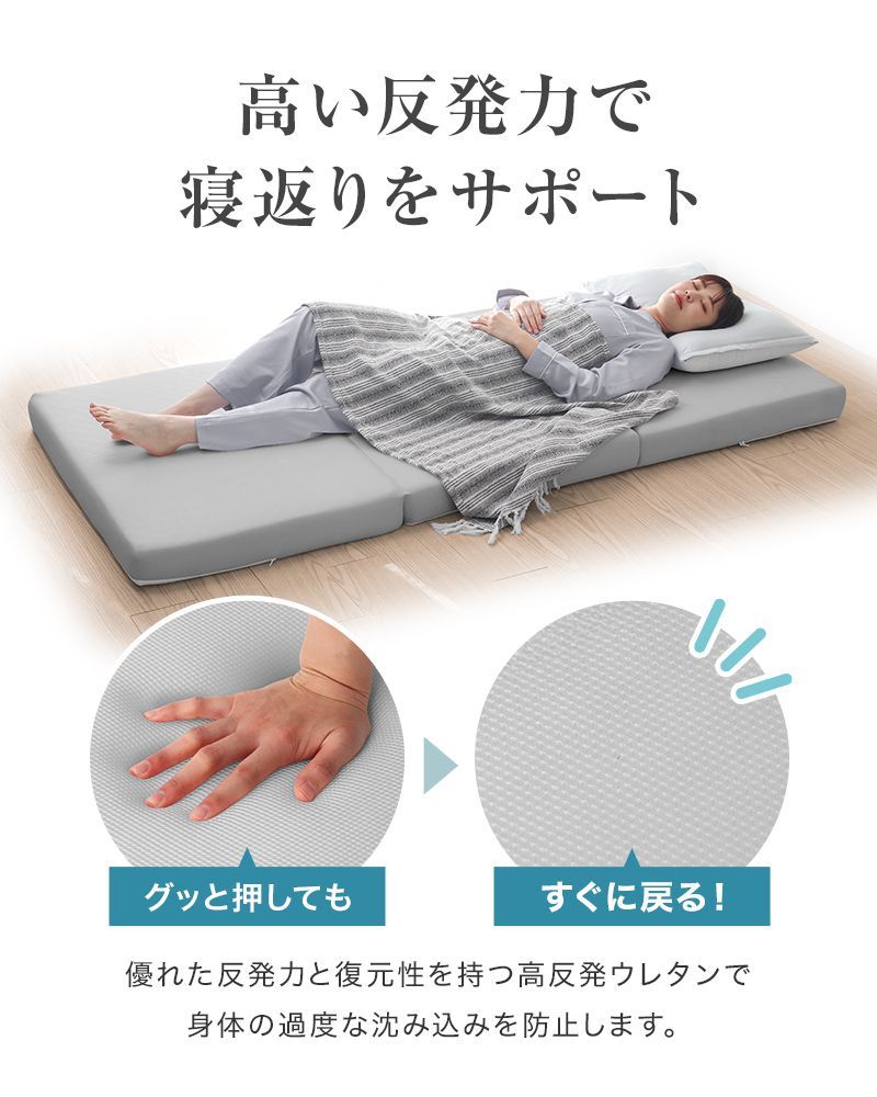 高反発マットレスは下からの跳ね返りの力により、沈み込みが少ないのが特徴です。