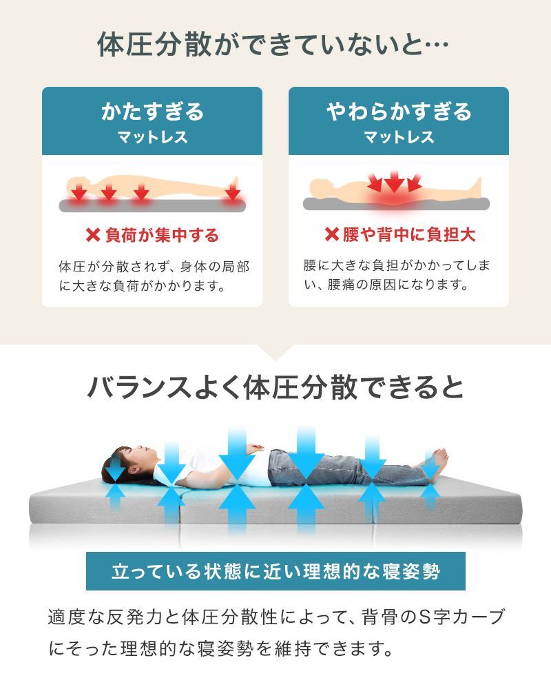 その為、寝返りがうちやすく就寝時の身体の一部分(首・肩・腰・足)にかかる体圧も分散。