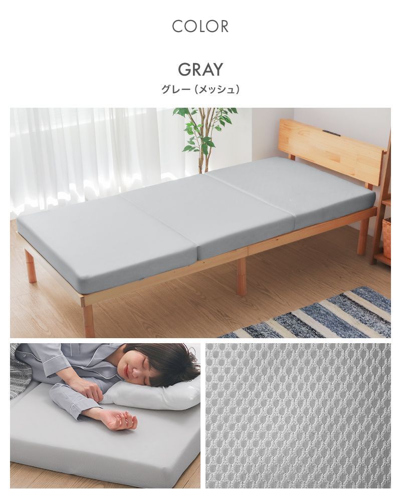 三つ折りタイプは、押入れなどに収納しやすく、立て掛けておいても場所をとりません。