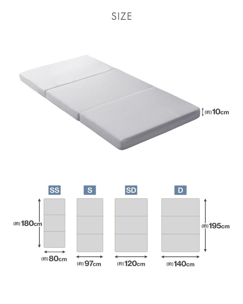 厚みたっぷり10cmで、1枚でも底付き感のない寝心地。