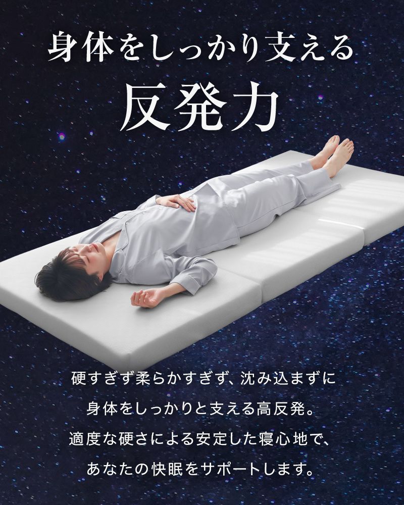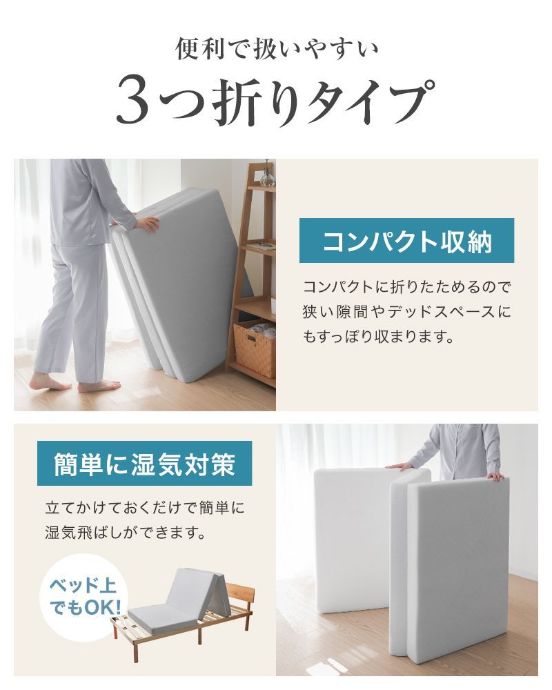 三つ折りタイプは、押入れなどに収納しやすく、立て掛けておいても場所をとりません。