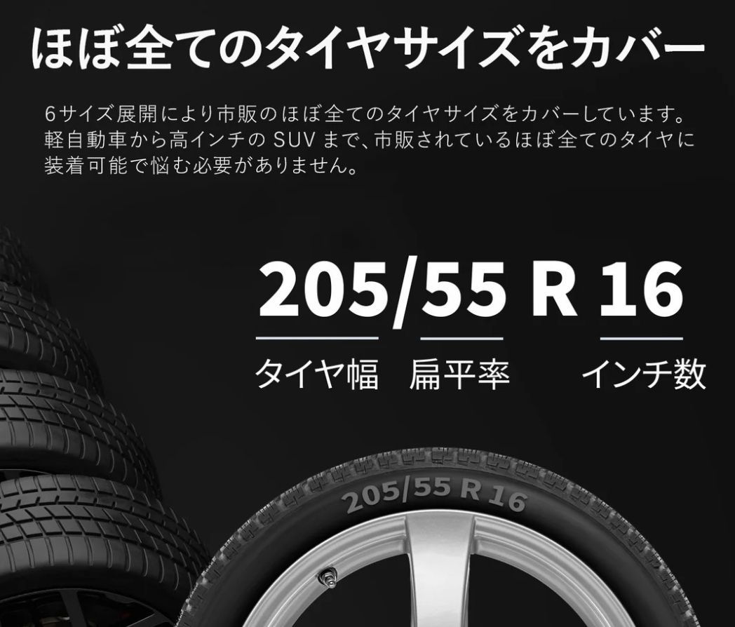 ※ 間違ったサイズ、誤った装着、制限速度(時速50km以下)を超える走行、空転、無理な運転作(急発進、急ハンドル、急プレーキ、同方向への繰り返しの旅回)などの誤ったご使用による商品の破損については返品交換等の対応は致しかねますのでご了承ください。また、これらの誤った商品のご使用による車体への傷、事故、財産損害、人身傷害等については一切の責任を負いかねますのでご了承下さい。予告なしに仕様変更する場合があります。