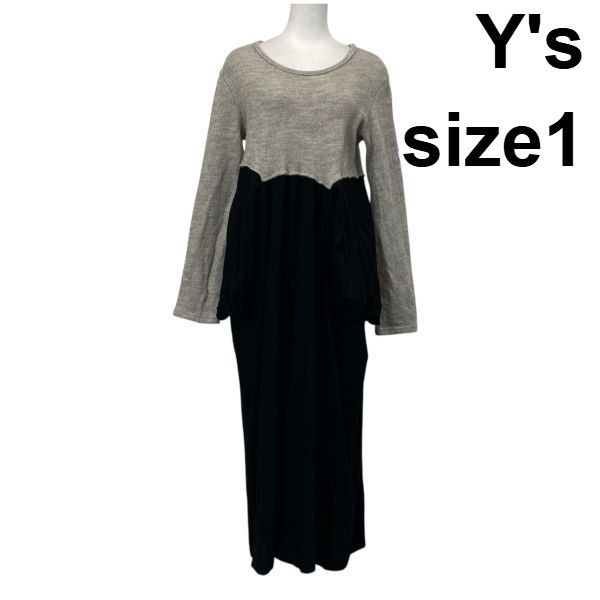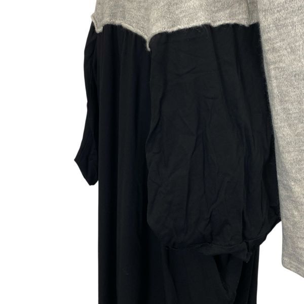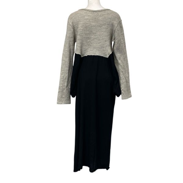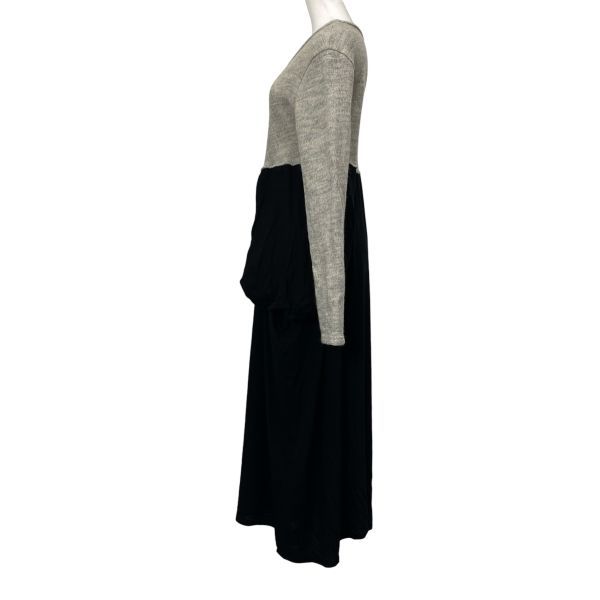 切替ニットワンピース 長袖 マキシ丈 異素材 フレア Aライン トップス ドッキングワンピース