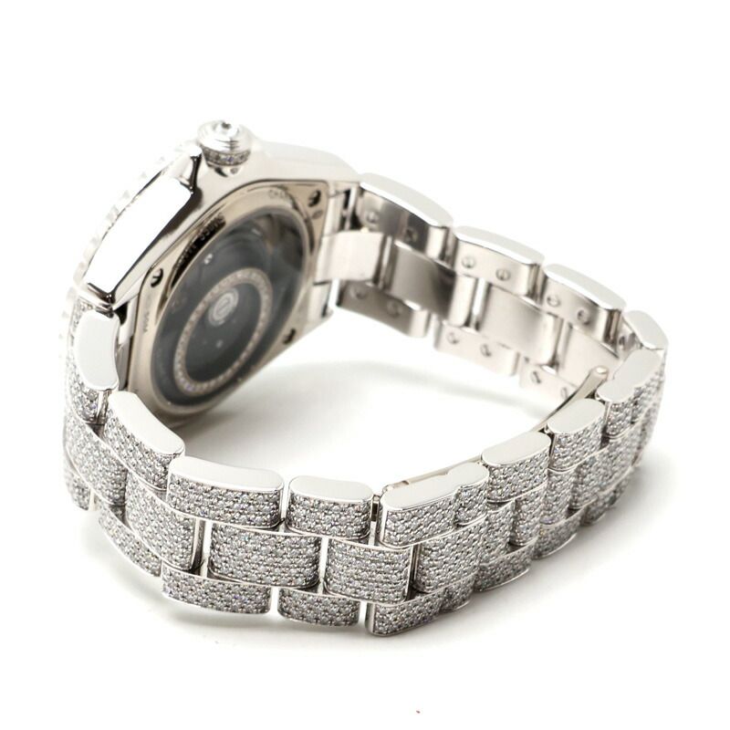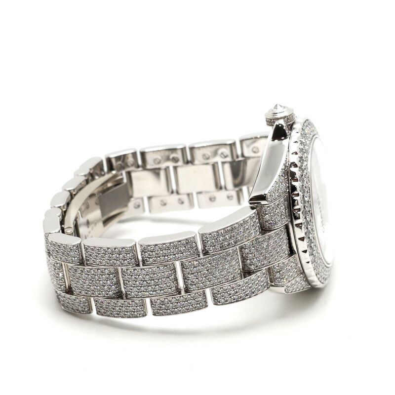 ケース全体に敷き詰められた パヴェフルダイヤモンド が、比類なきラグジュアリーを放つ特別なモデルです。素材には重厚で上質な K18ホワイトゴールド を採用し、ダイヤモンドの輝きと調和する圧巻の存在感を実現しています。