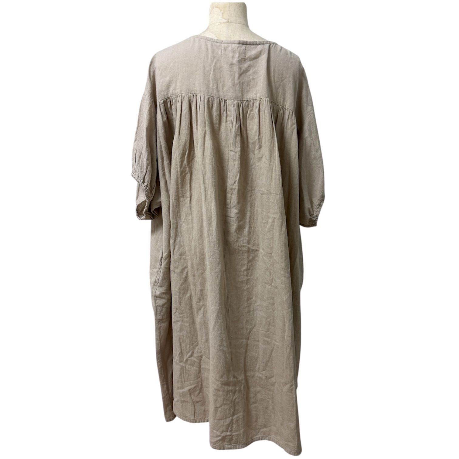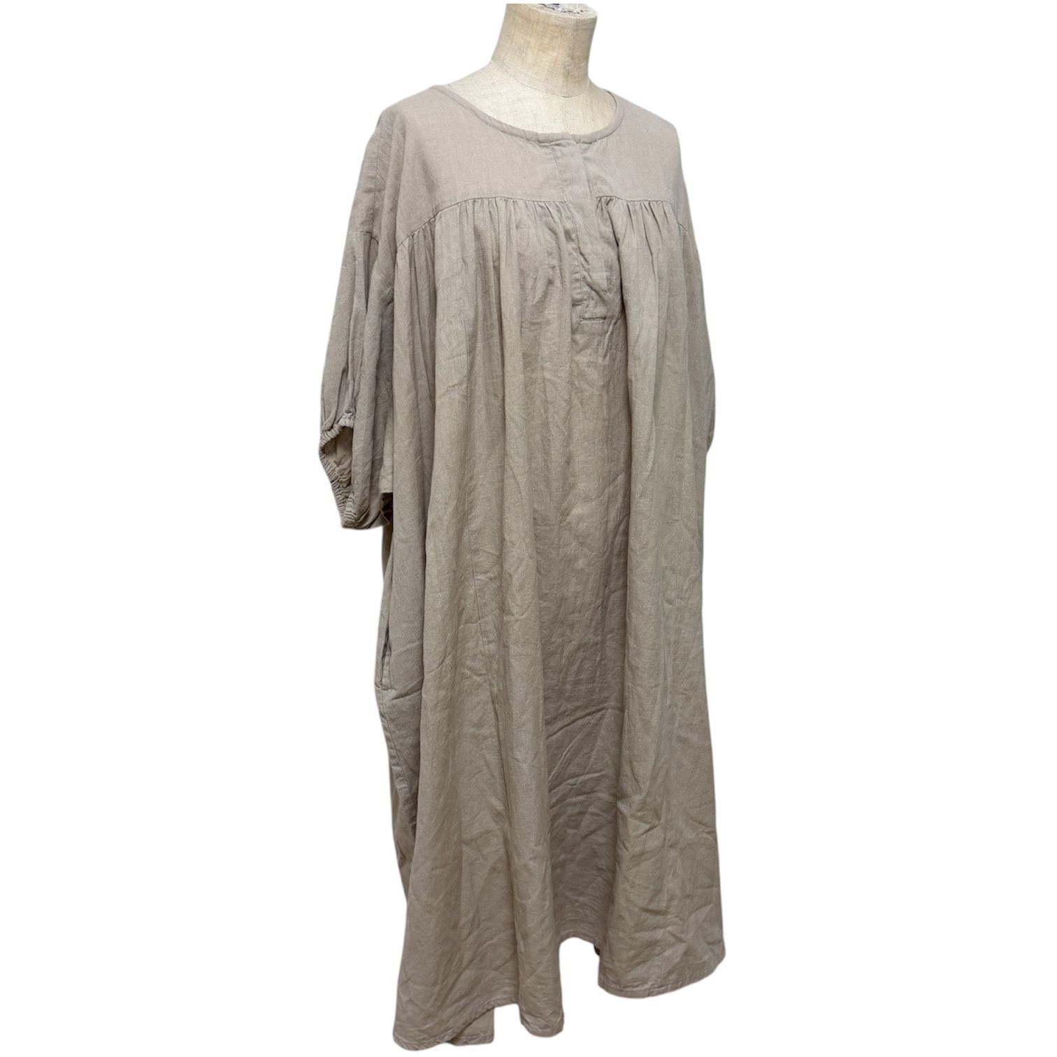 レディース、ワンピース、ロング、マキシ、ゆったり、ナチュラル、リネン、コットン、綿麻、r.p.s、古着、Aライン、ギャザー、ベージュ、大人、シンプル、春、夏、秋にも着用可能です。
