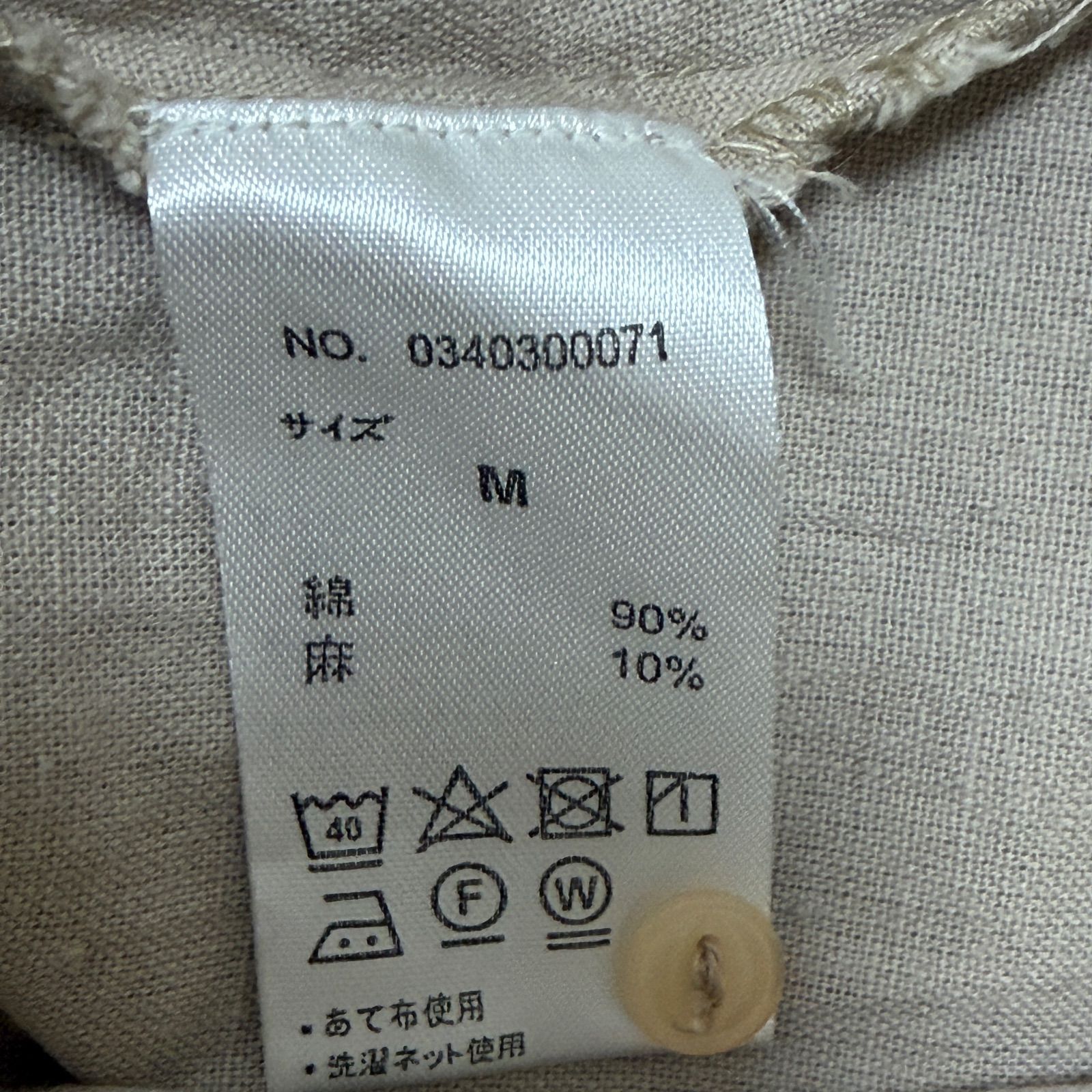 素材は綿90%、麻(リネン)10%のコットンリネンブレンドで、通気性が良く、これからの季節にさらっと一枚で快適におしゃれを楽しめます。無地のベージュカラーは、アースカラーコーデや、お手持ちのアイテムとの着回し力も抜群です。