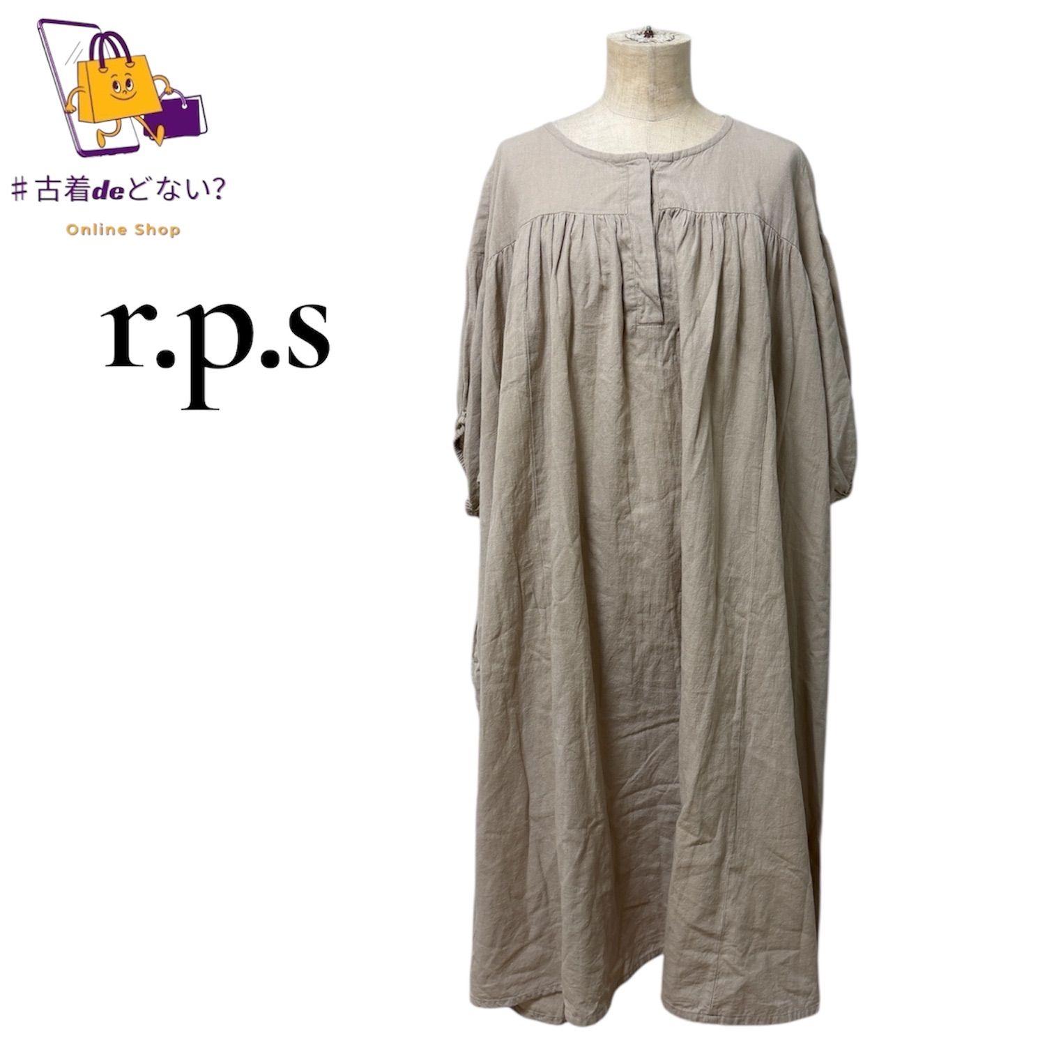 #rps #アールピーエス #ワンピース #ロングワンピース #マキシワンピース #リネン #麻 #綿麻 #リネンブレンド #コットンリネン #ナチュラル #ナチュラルファッション #ゆったり #オーバーサイズ #ビッグシルエット #Aライン #ギャザー #ベージュ #アースカラー #シンプル #大人カジュアル #古着 #古着deどない #レディース