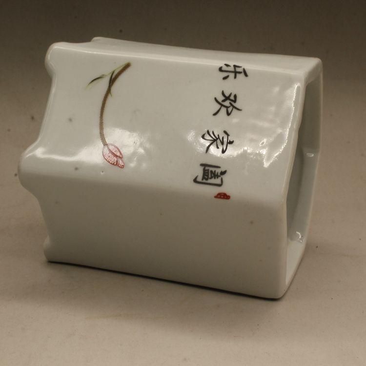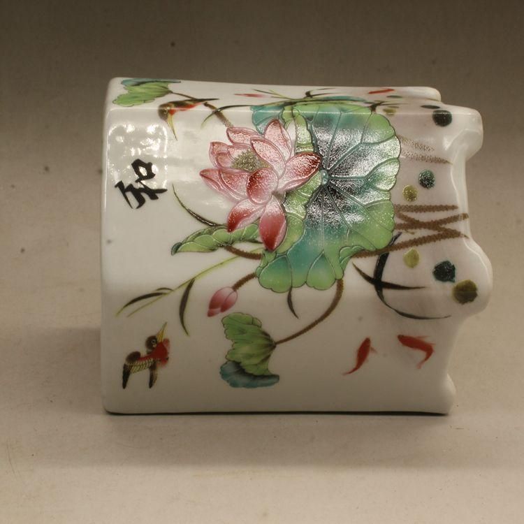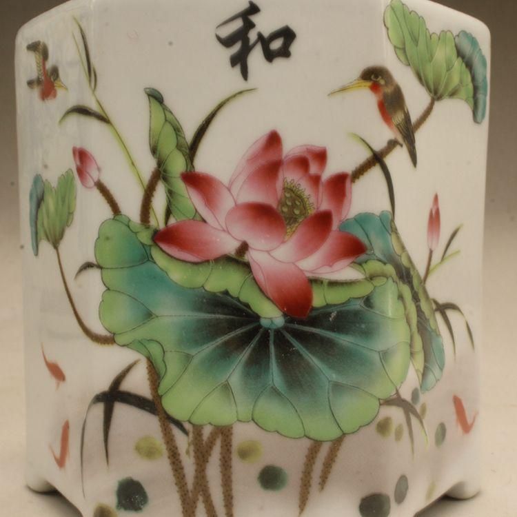 中国美術 彩蓮花六方小筆箱 書道具 文房具 工芸品 美術品 置物