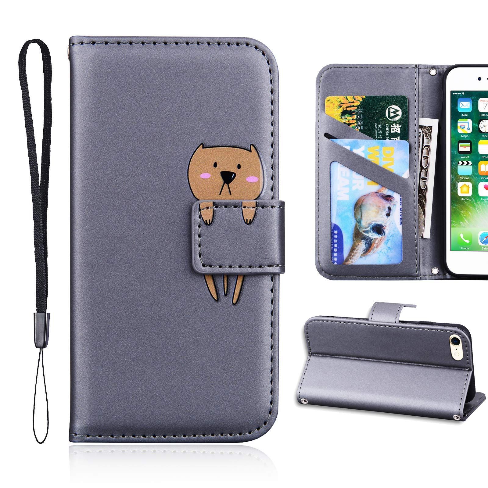 iPhone SE ケース 第3世代 iPhone SE2 /8/7 ケース手帳型 iPhone SE3 携帯ケース iPhone 8 手帳 iPhone7 ケース 手帳型 アイフォン se2 カバー スマホケース 携帯カバー レザー 耐衝撃TPU 財布型 カード収納 ストラップ付き 傷つけ防止 スタンド機能 動物型 イヌ (iPhone8/iPhone7/se2/se3対応) グレー