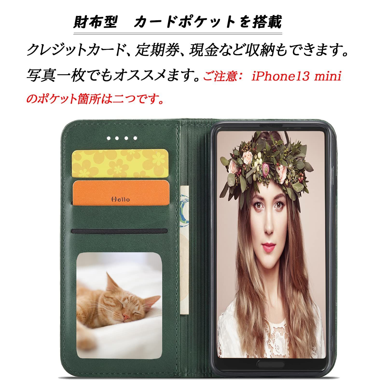 Mectoo iPhone 13 mini ケース 手帳型 iPhone13 mini 手帳型ケース アイフォン 13ミニ 2021年 iPhone 13mini ケース手帳 あいふぉん13 ミニ カバー スマホケース 財布型 携帯ケース case スマホカバー 携帯カバー 肌触り良い 肌感レザー 柔らかいTPUケース カード収納 マグネット式 スタンド機能 ストラップホール付き 薄型 軽量 360度保護 耐衝撃 かっこいい 美しい ビジネス風 男女兼用 (iPhone13 mini 5.4 inch対応) レトログーリン