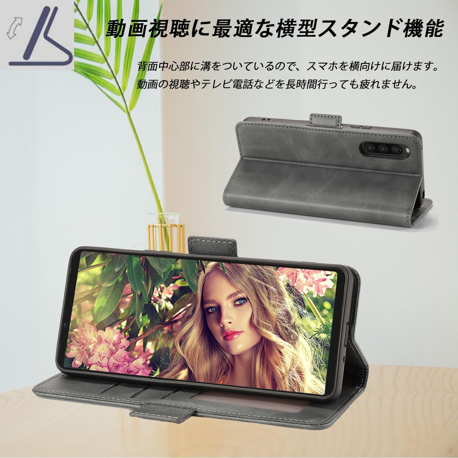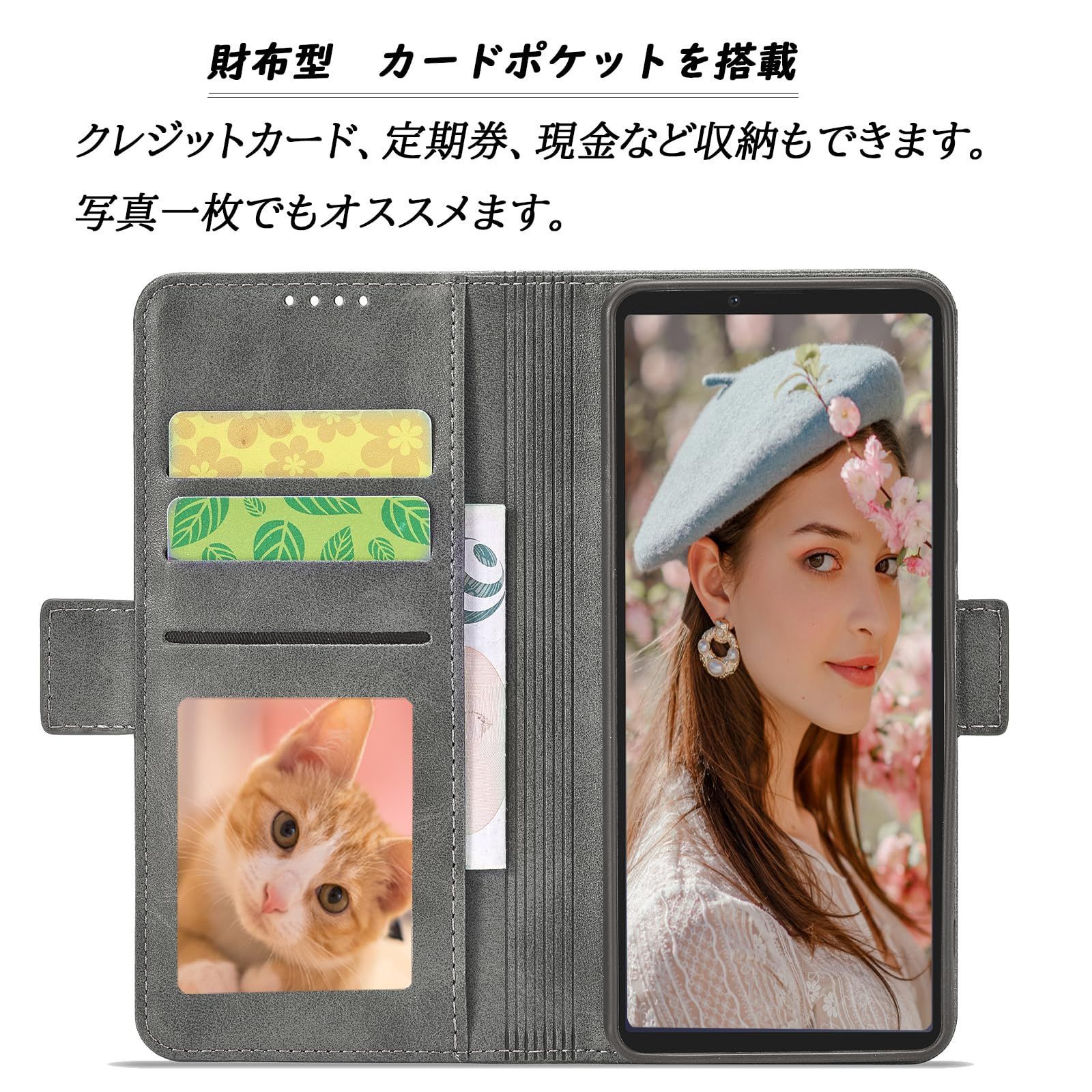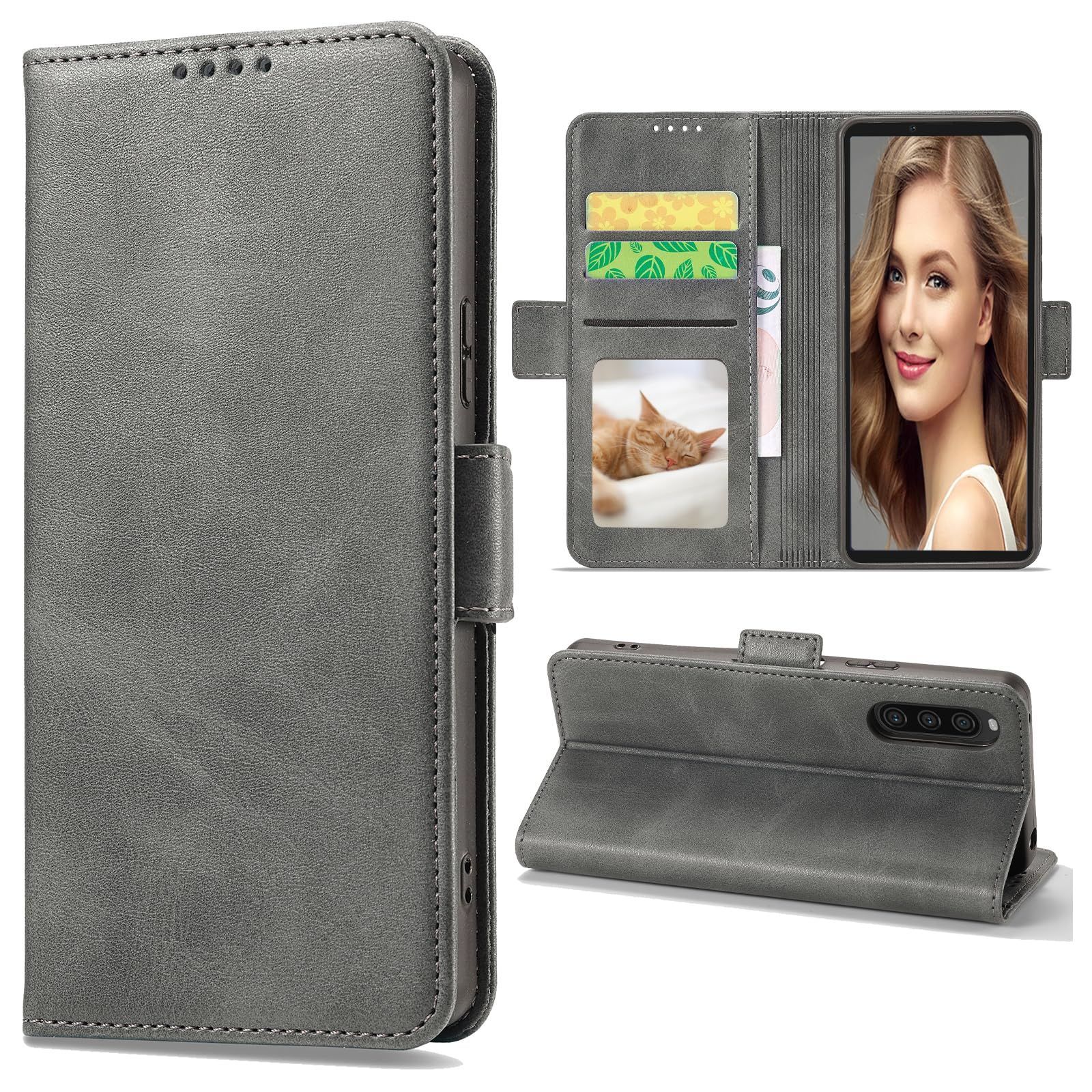 Xperia 10 V ケース手帳型 SOG11 docomo SO-52D SIMフリー SoftBank 楽天モバイル 全対応 xperia10 case マーク5 手帳 カバー スマホケース エクスペリア10 V ケース 携帯ケース PUレザー ストラップホール付き カード収納 マグネット内蔵 スタンド機能 耐衝撃 (Xperia 10 V SO-52D SOG11 対応) グレー