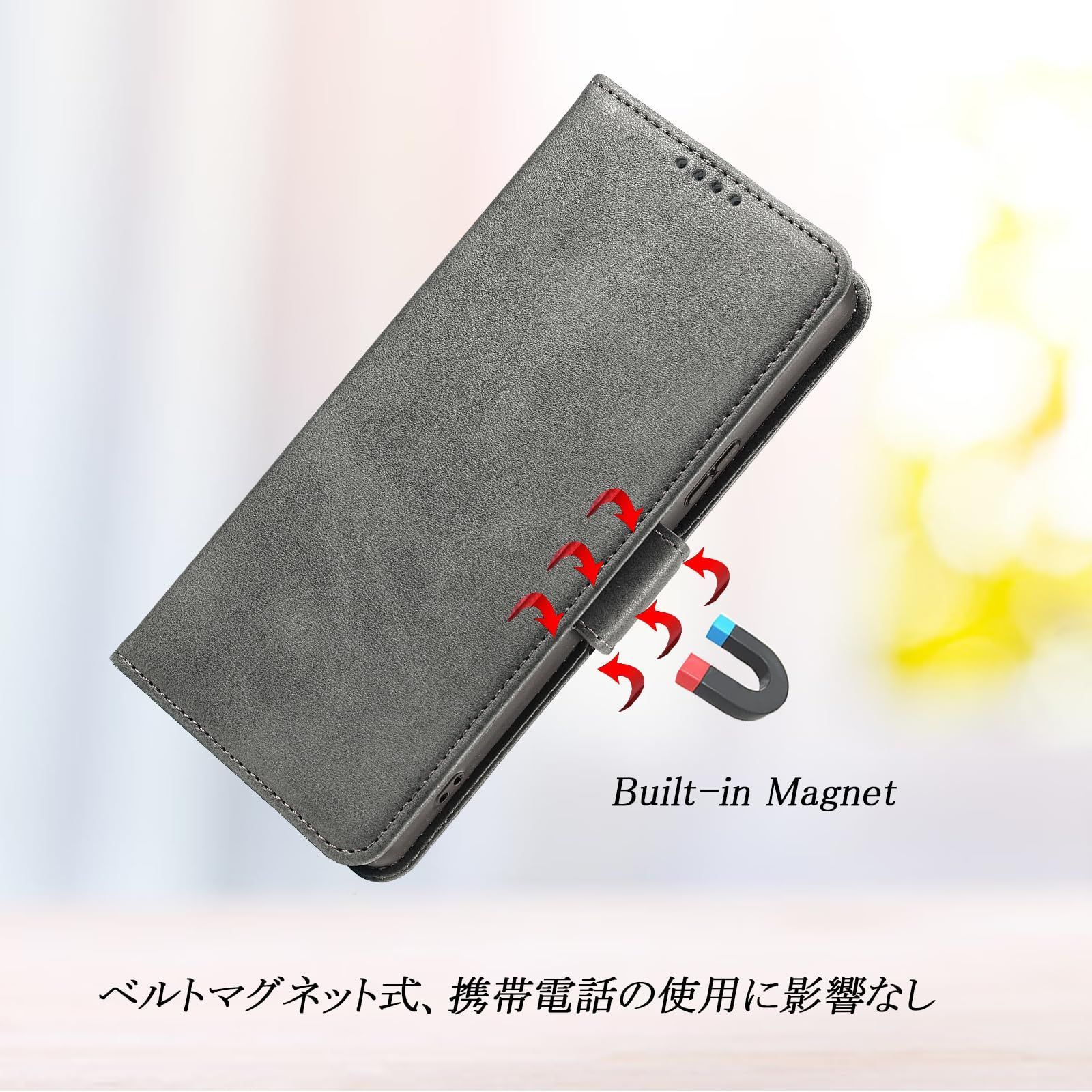 【素材改良】本商品の外部カバーは牛革繊維を人工合成という生産プロセスで仕上げられた合革で、普通の合革より、性能上の 耐熱性、耐摩擦が一層アップされた。表面生地が硬すぎず、やわすぎず、ちょっと良い手触りです。手汗が出てきても滑りにくく、ケースにも変な匂いがございません。インなケースは弾力性のあるソフト素材を採用しており、四角までしっかり保護でき、実用性高い手帳型です。