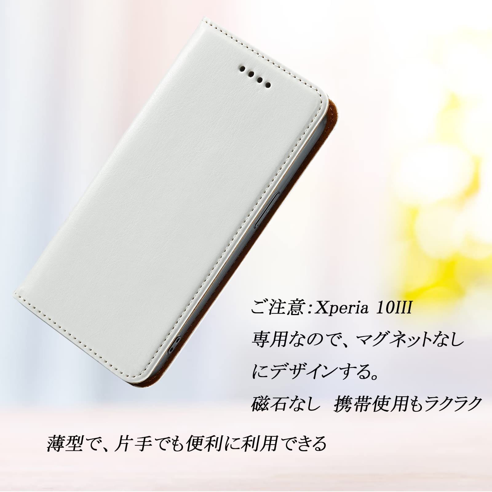 Xperia 10 III ケース手帳型 SO-52B SOG04 手帳型ケース 携帯ケース XQ-BT44 ケース Xperia 10 III Lite スマホケース エクスぺリア10 III ライト ケース SOG04 ケース SO-52B 手帳型 カバー スマホケース 携帯カバー肌触り良い PUレザー ストラップホール付き カード収納 財布型 xperia 10 iii case マグネットなし スタンド機能 耐衝撃 全面保護 薄型 軽量 防水 耐摩擦シンプル ビジネス風 大人可愛い 男女兼用 (For Sony Xperia 10 III SO-52B SOG04 / Xperia 10 III Lite / XQ-BT44 6.0 inch対応) ホワイト