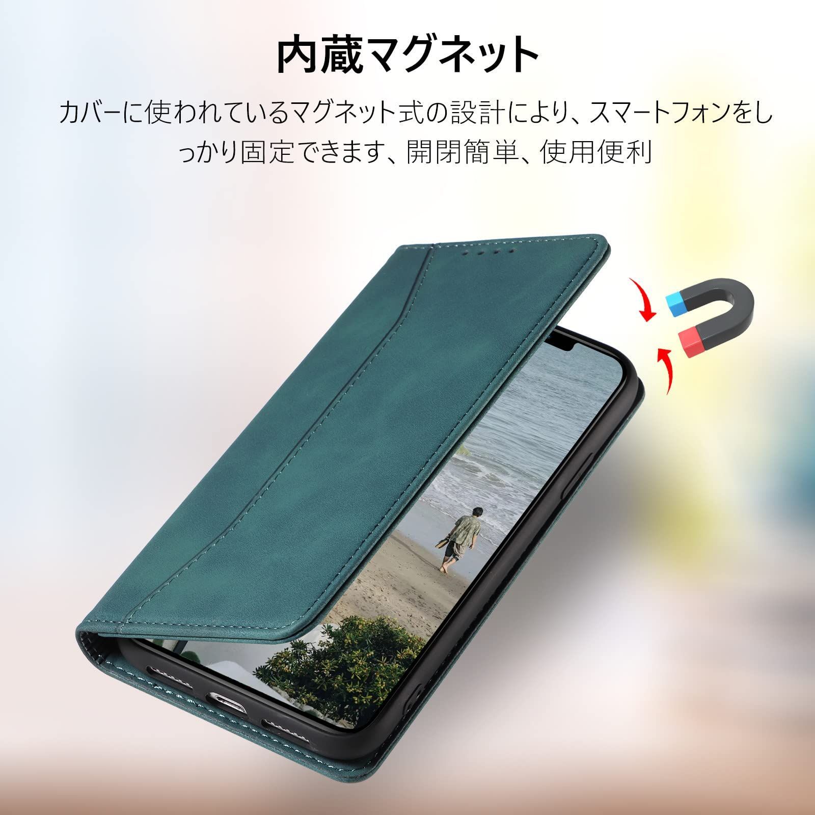KWATUNG iphone 12 ケース 手帳型 おしゃれ 肌感レザー iphone 12pro ケース 手帳型 耐衝撃 内蔵マグネット iphone12 手帳型ケース カード収納 スタンド機能 全面保護【6.1インチ】ターコイズ