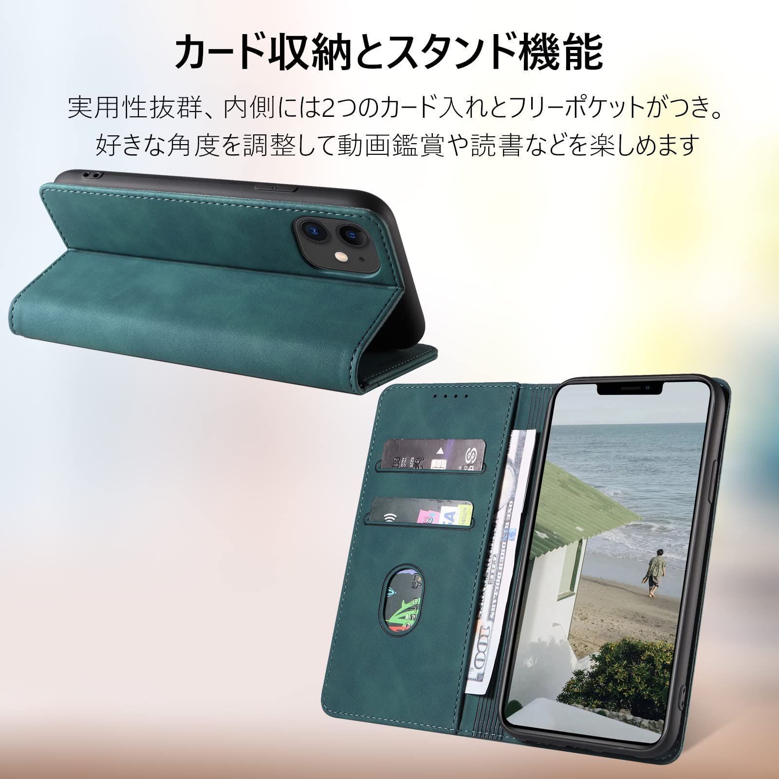 ★【カード収納とスタンド機能】iPhone 12プロ 手帳ケース動画視聴に便利なスタンド機能が付き、横向いて斜めに立てて、お好きな角度を調整でき、両手が解放され、お気軽に読書やビデオの観賞を楽しむことができます。内側には2つのカード入れとフリーポケットがつき、名刺や定期券の収納に優れているアイフォン12 プロケースです。