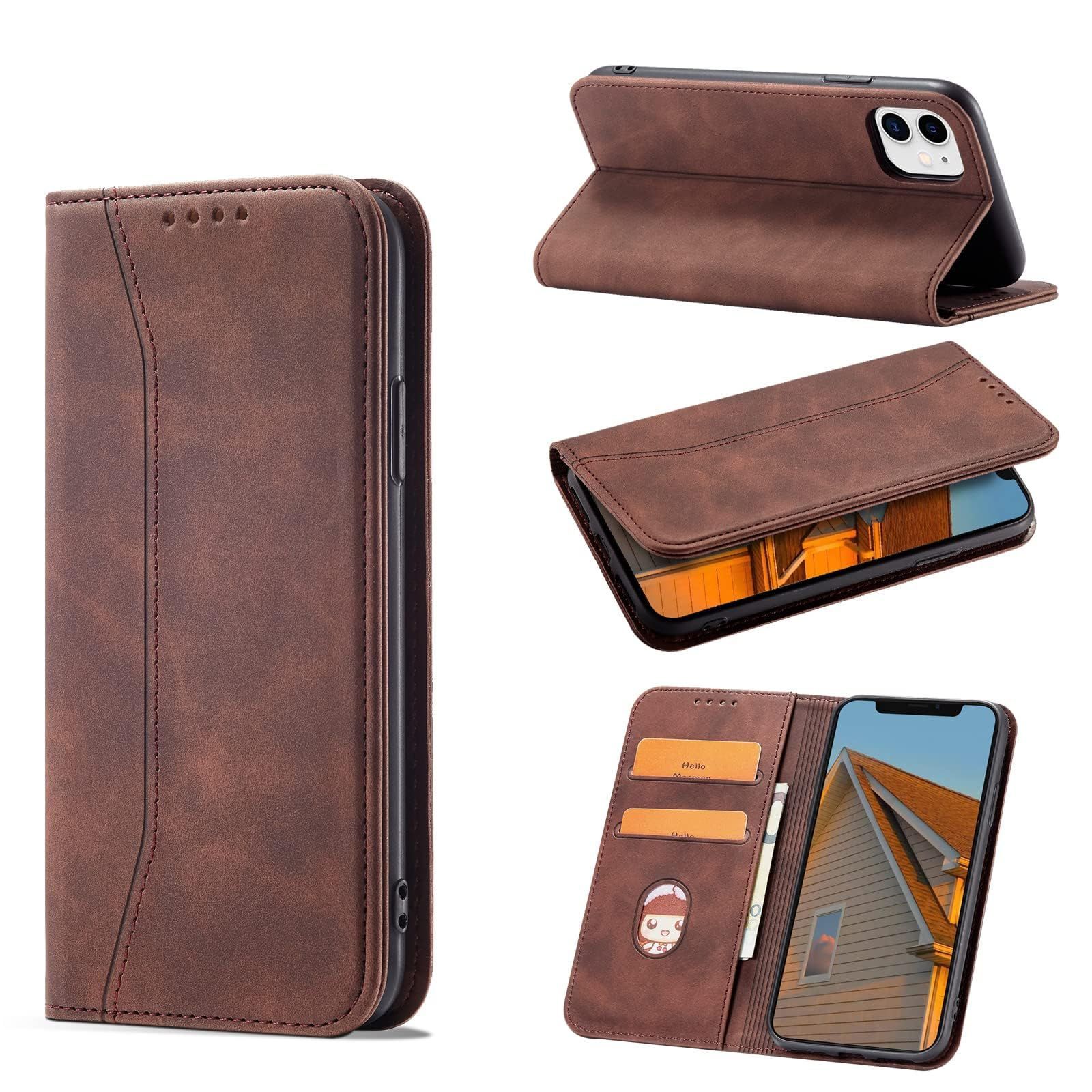【iPhone 12/12 Pro ケース】KWATUNG iphone 12 ケース 手帳型 おしゃれ 肌感レザー iphone 12pro ケース 手帳型 内蔵マグネット耐衝撃 iphone12 手帳型ケース カード収納 スタンド機能 全面保護【6.1インチ】レトロコーヒー