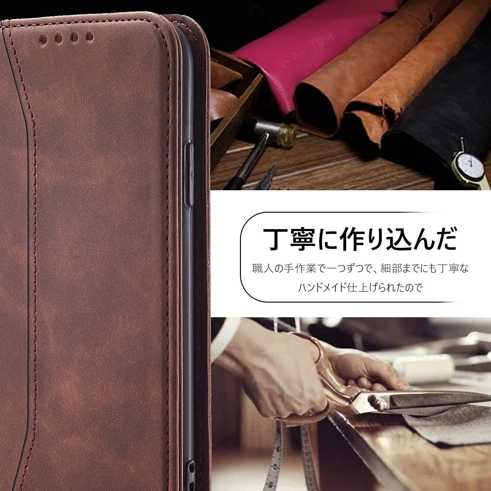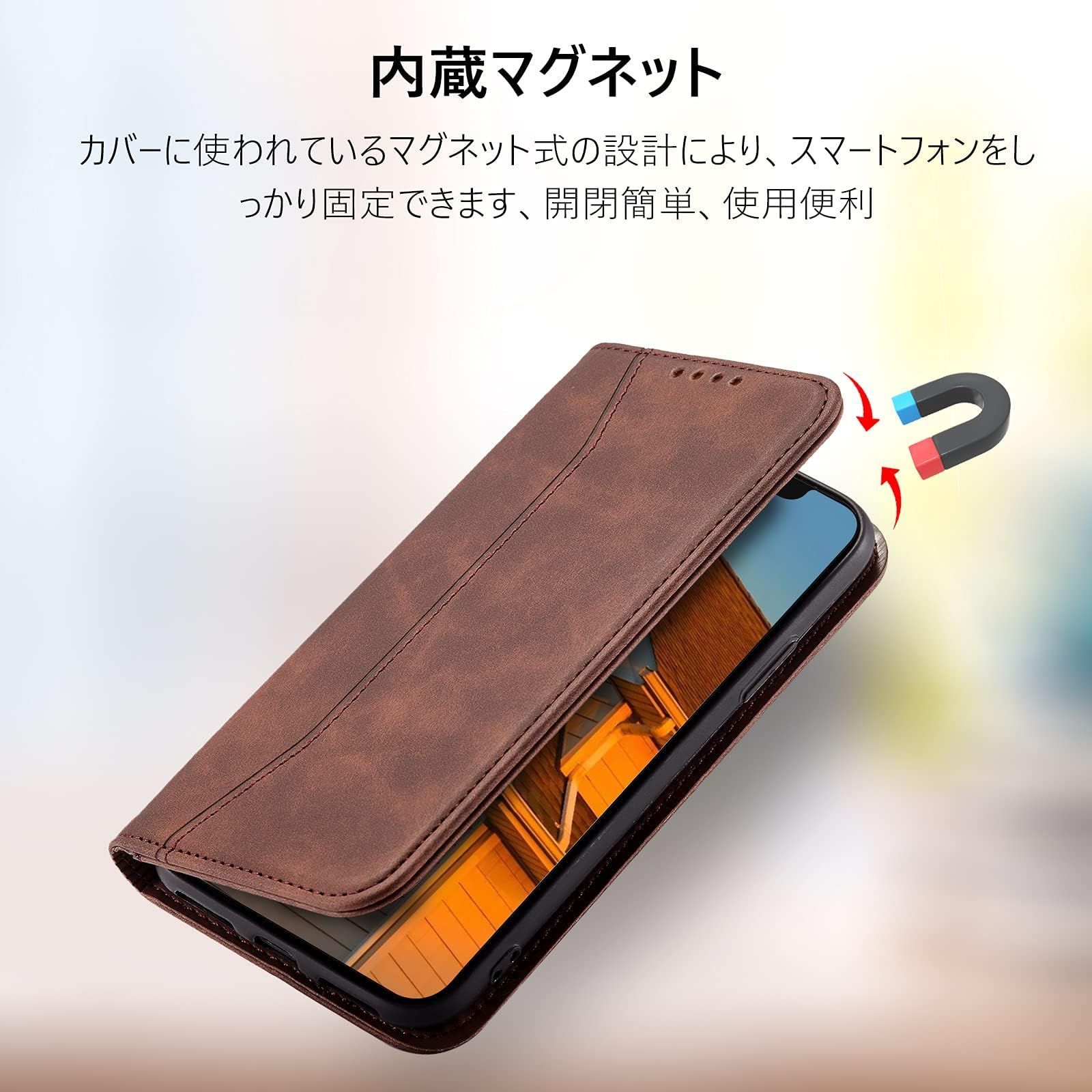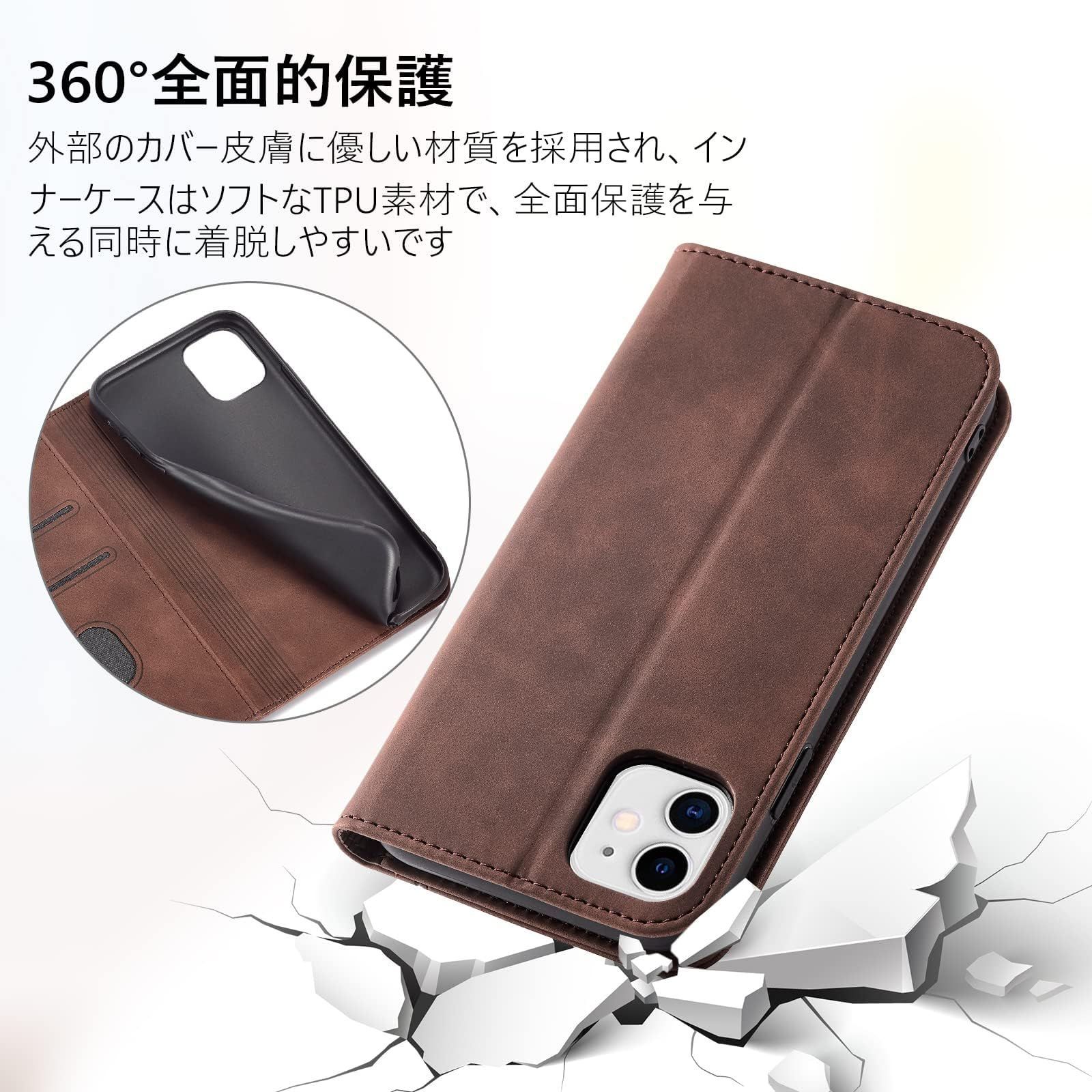 ★【高品質素材製】外部のカバーは肌感のような素材を採用しており、普通のレザーより、耐熱性と柔軟性を一層アップされ、素材の表面に手触りは非常に良いフィット感を与えられ、夏でも手汗で変な匂いが出てきてません。インナーケースはソフトなTPU素材で、全面保護を与える同時に着脱しやすいです、角までしっかり保護できるiPhone 12 手帳型ケースです。