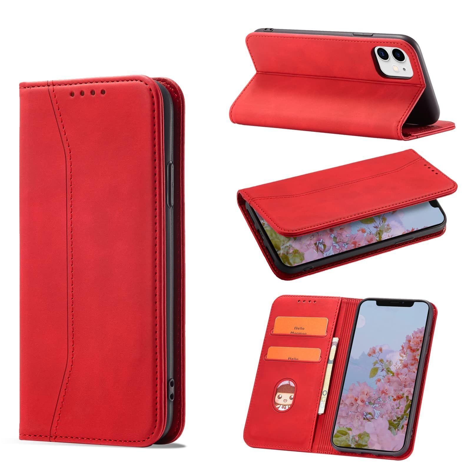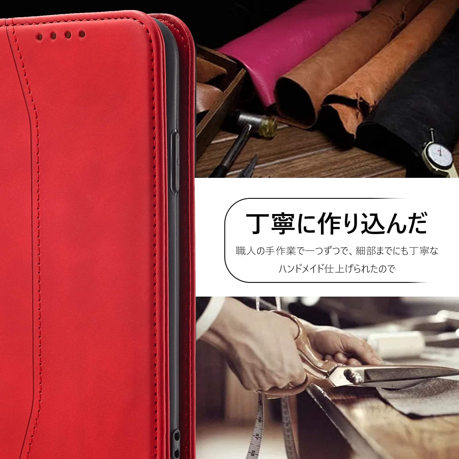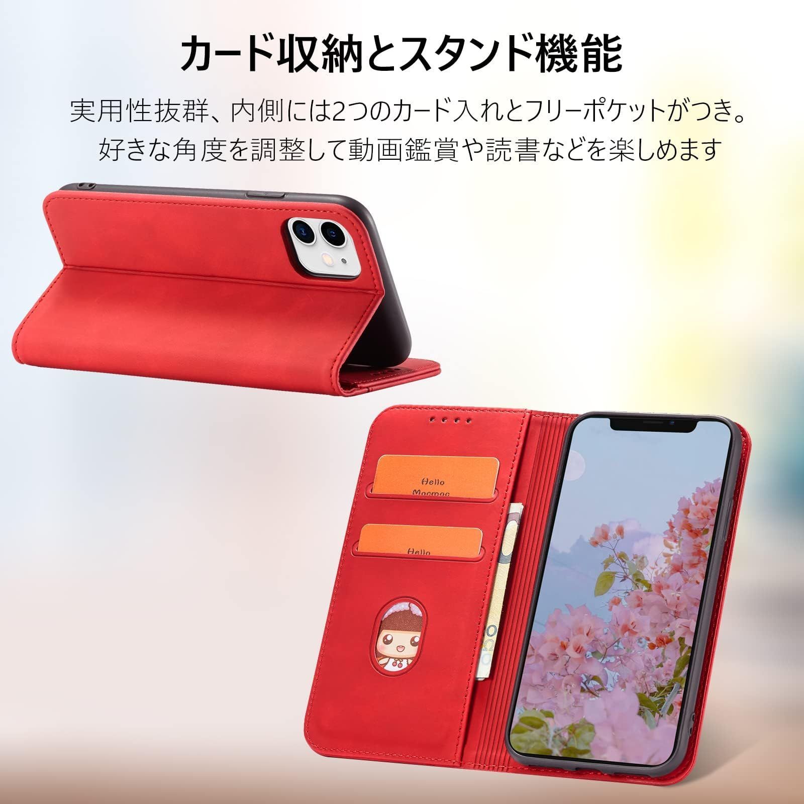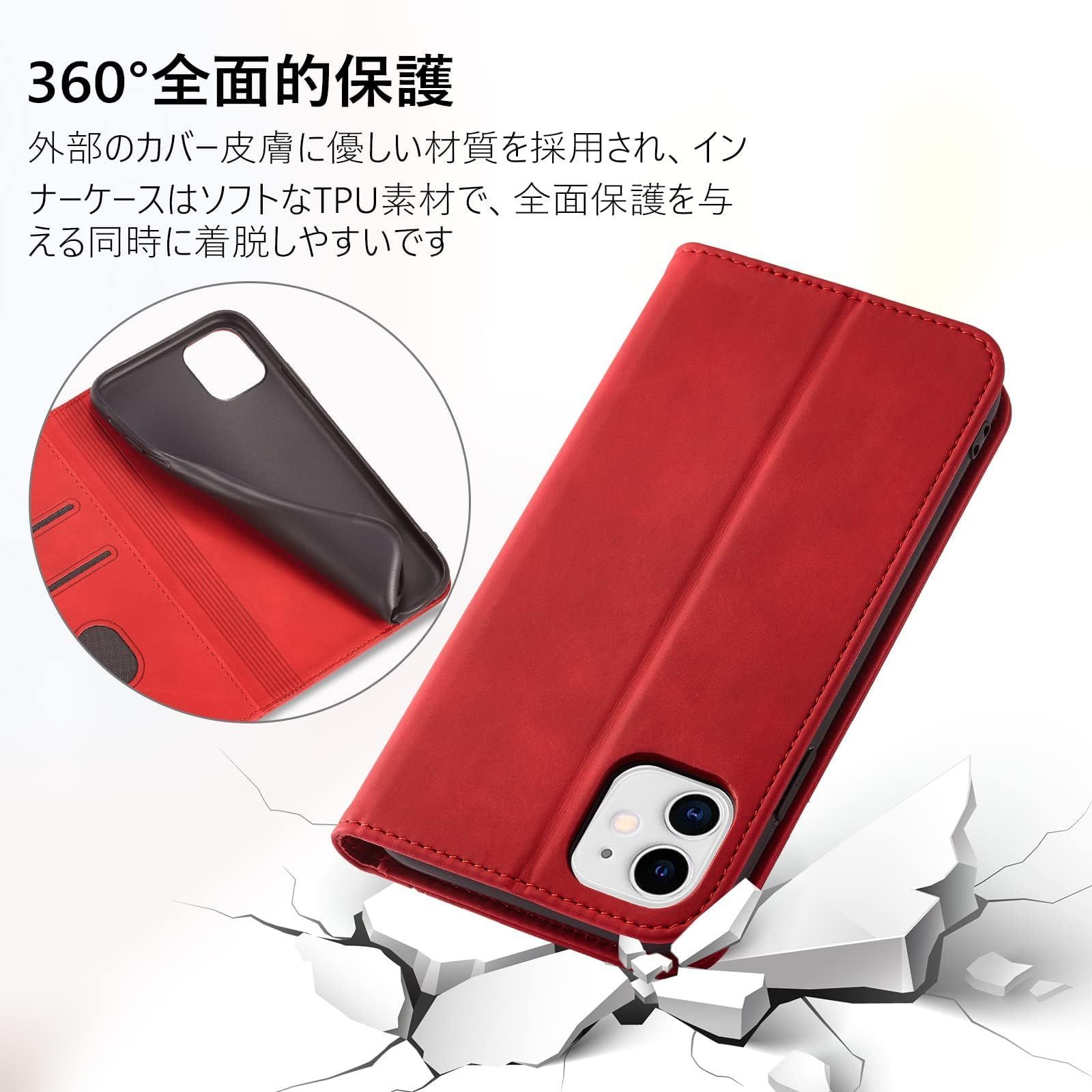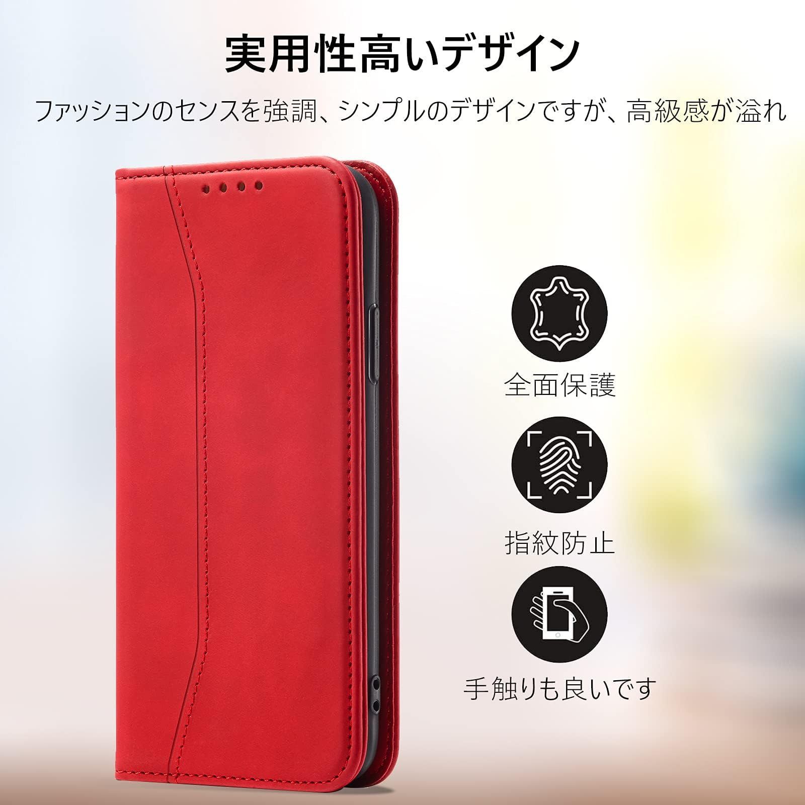 【iPhone 12/12 Pro ケース】KWATUNG iphone 12 ケース 手帳型 おしゃれ 肌感レザー iphone 12pro ケース 手帳型 内蔵マグネット耐衝撃 iphone12 手帳型ケース カード収納 スタンド機能 全面保護【6.1インチ】レッド