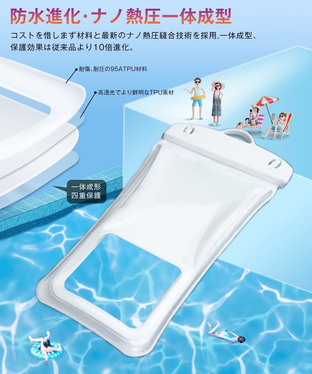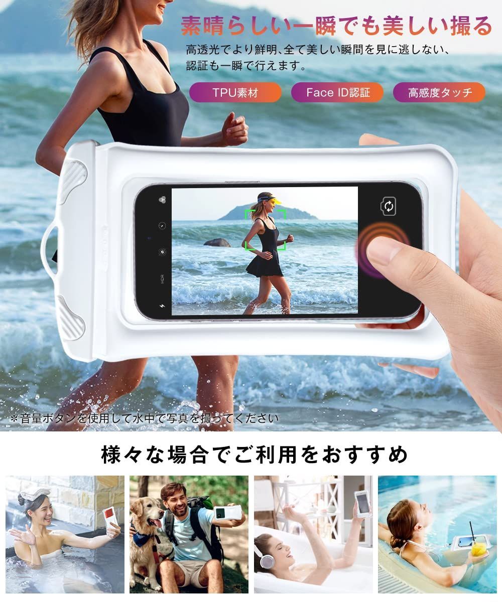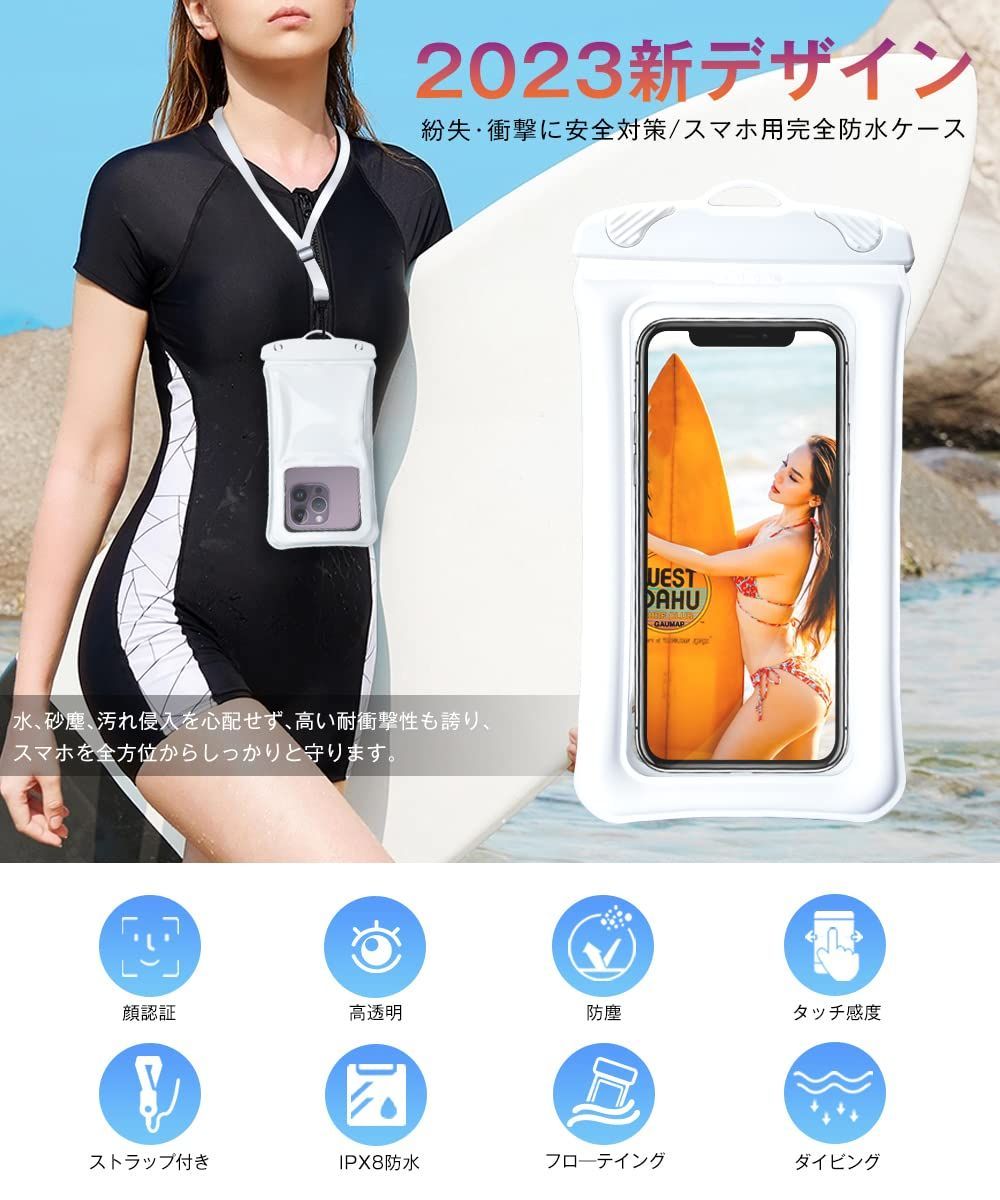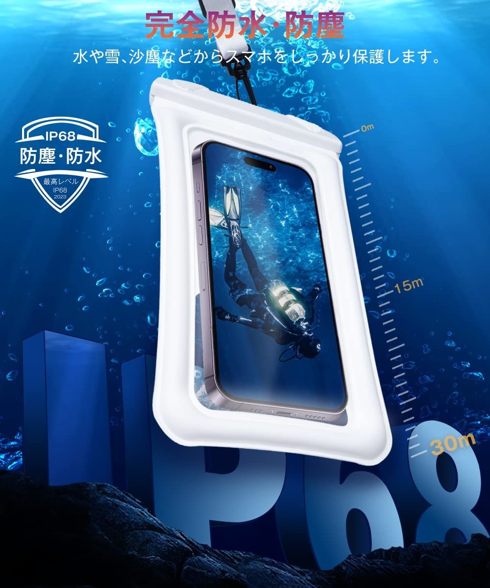 スマホ 防水ケース 水に浮く IP68認証 顔認証 撮影 通話 画面操作 浮き輪 iPhone16 15 14 13 Pro Max 12 11 XR SE Android 7 インチ以下対応 タッチ快適 小物管理 お風呂 海 プール 水泳 温泉など適用 Androidに対応 (ホワイト)