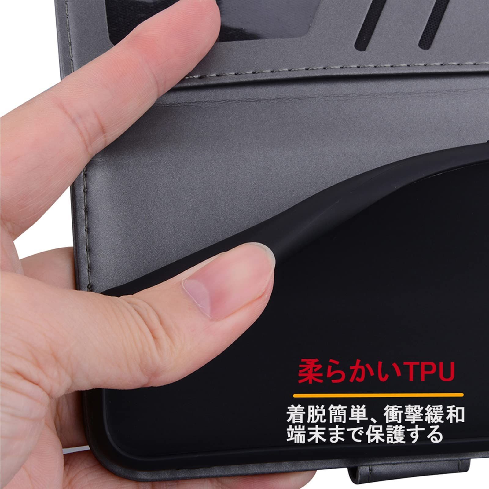【耐衝撃性】耐熱性と柔軟性を誇る上質なPUレザーで作られ、手触り良い、落下時の衝撃を効率的よく吸収できるようにケースの各コナーの裏側が設計されています。丈夫でほど良い厚みで、落としてもスマホをきちんとお守れます。