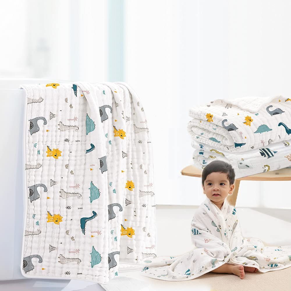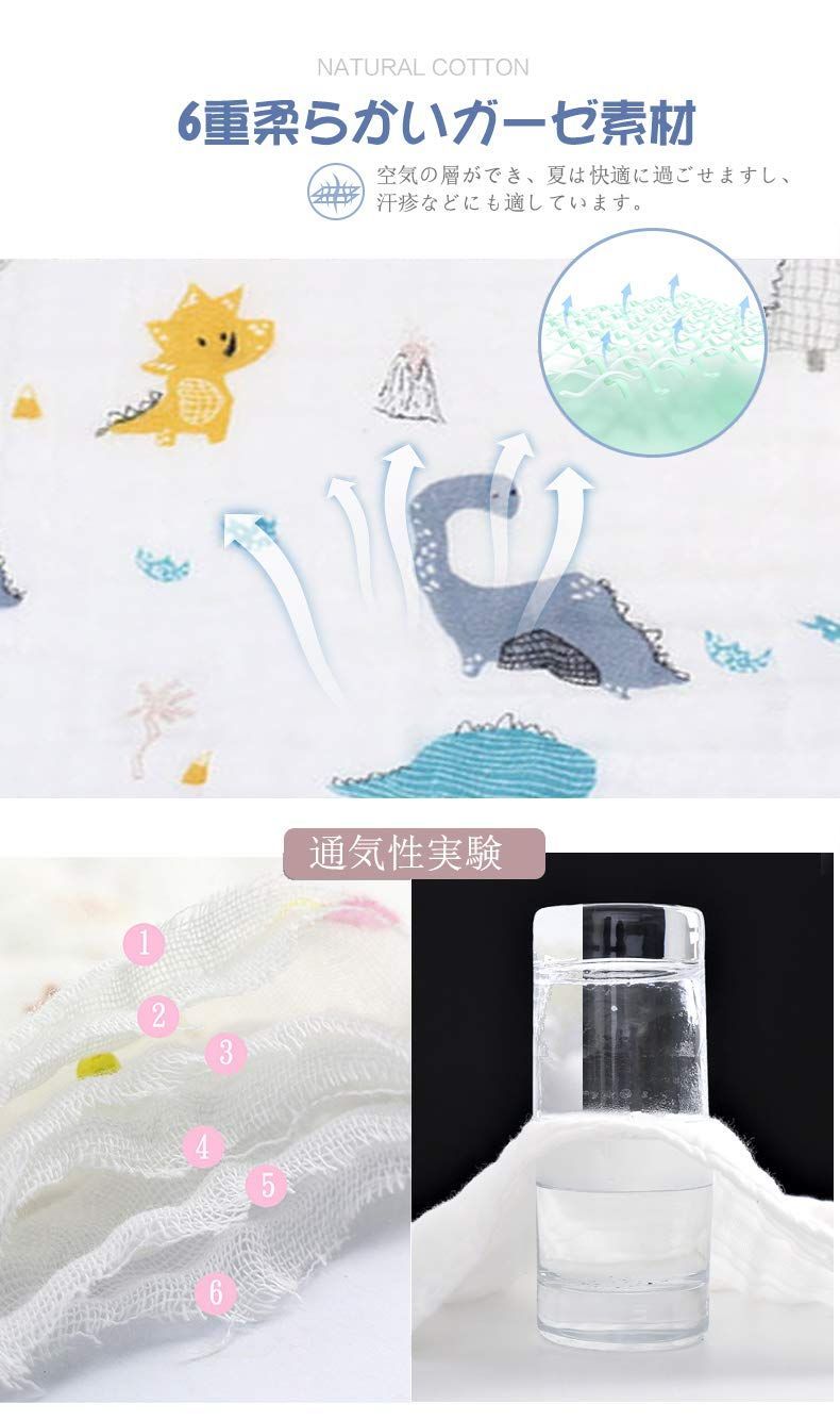 LILY CUPS 6重 ガーゼケット トドラーケット 保育園 ベビー タオルケットお昼寝 ベビー 赤ちゃん 出産祝い ((海と恐龍2枚組) L(トドラー約110×110cm))