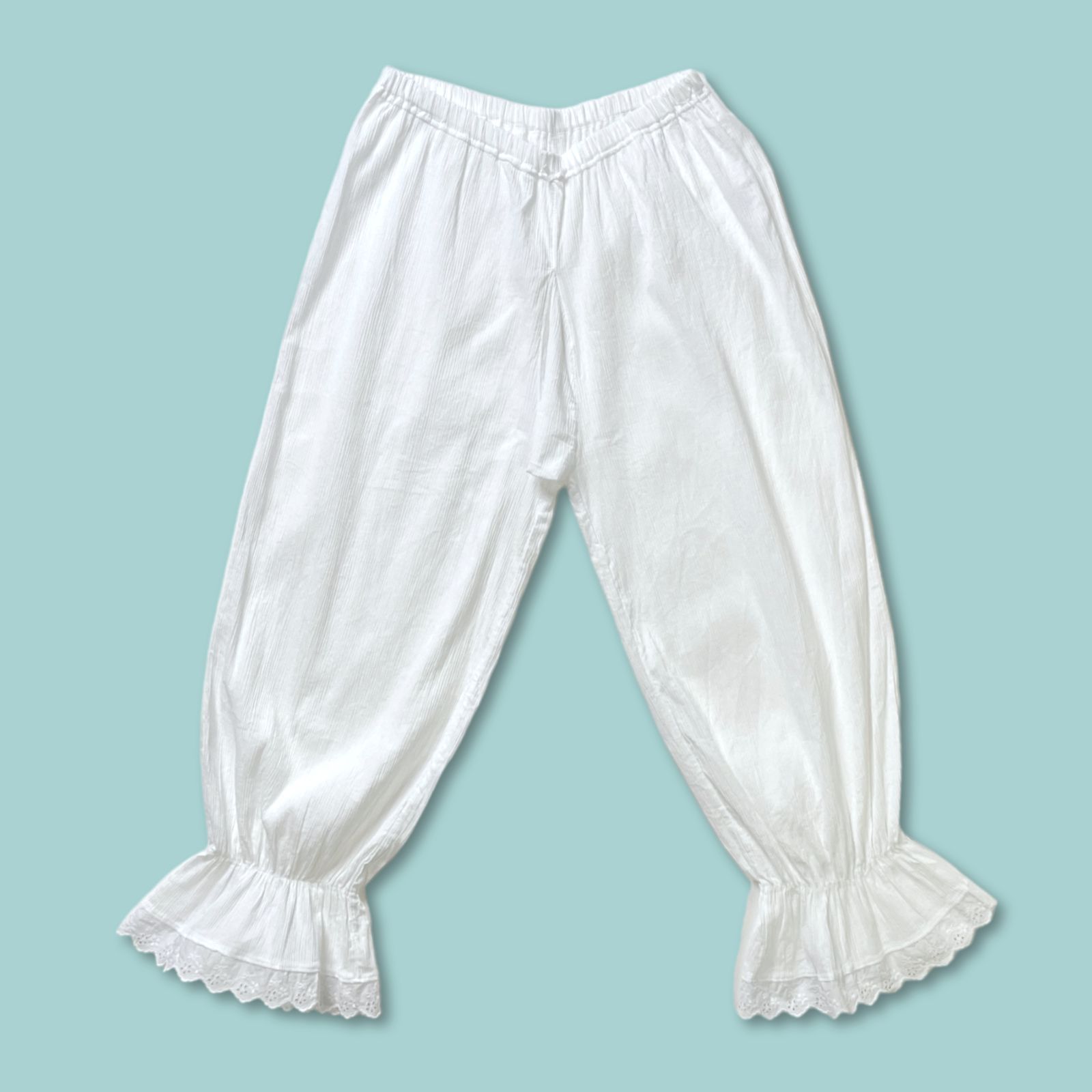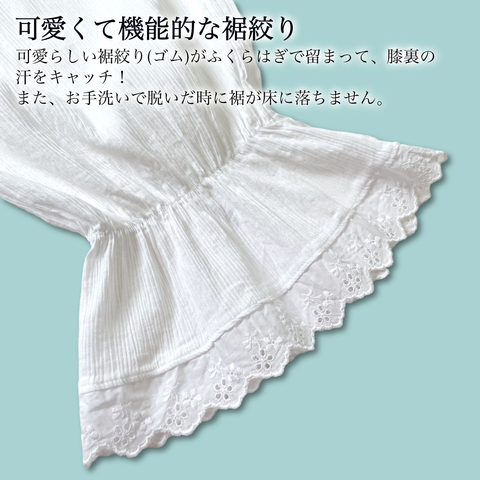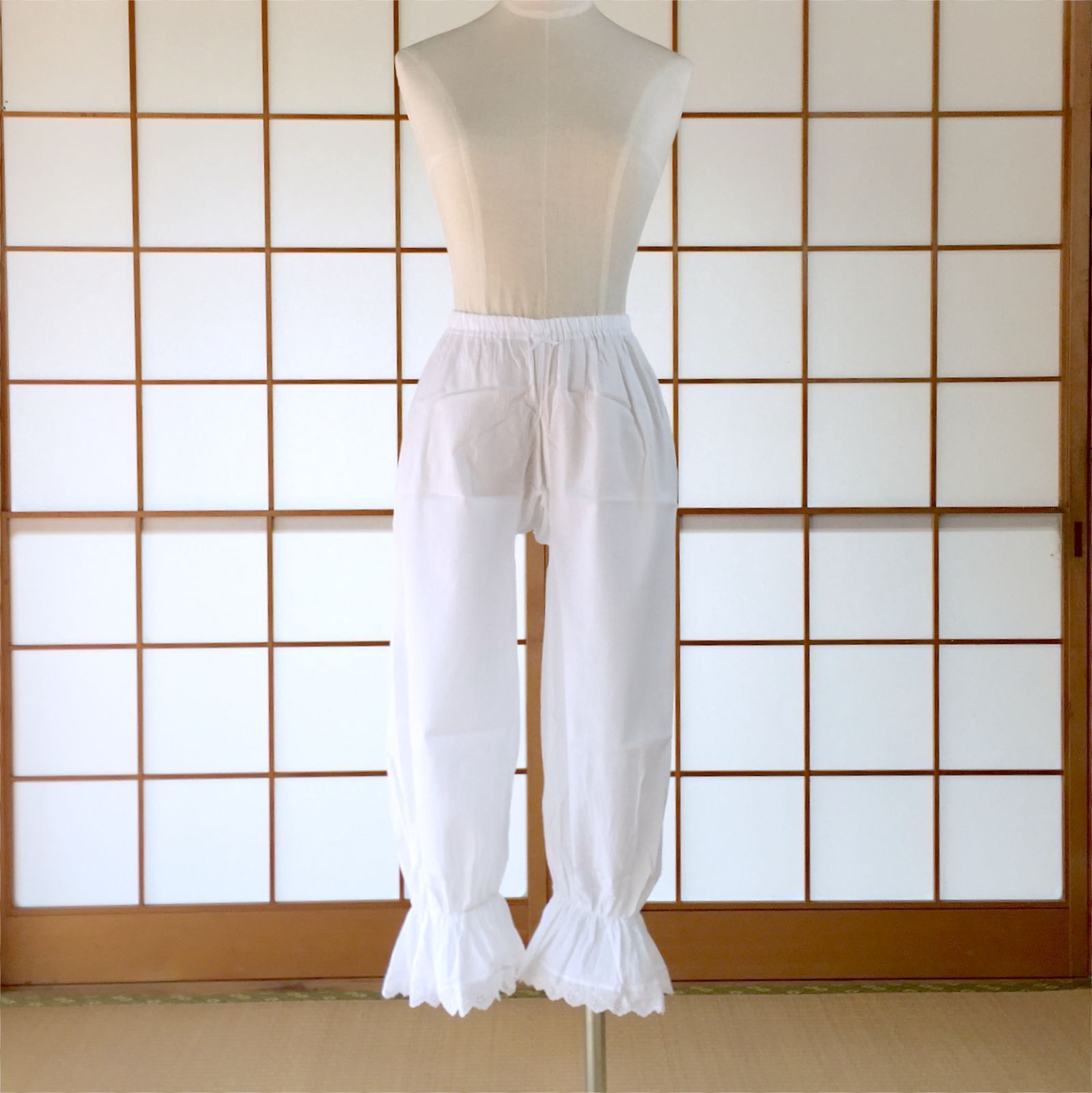 ドレスのドロワーズのように可愛いくて、超機能的な、パンツ型カンタン裾除けです。