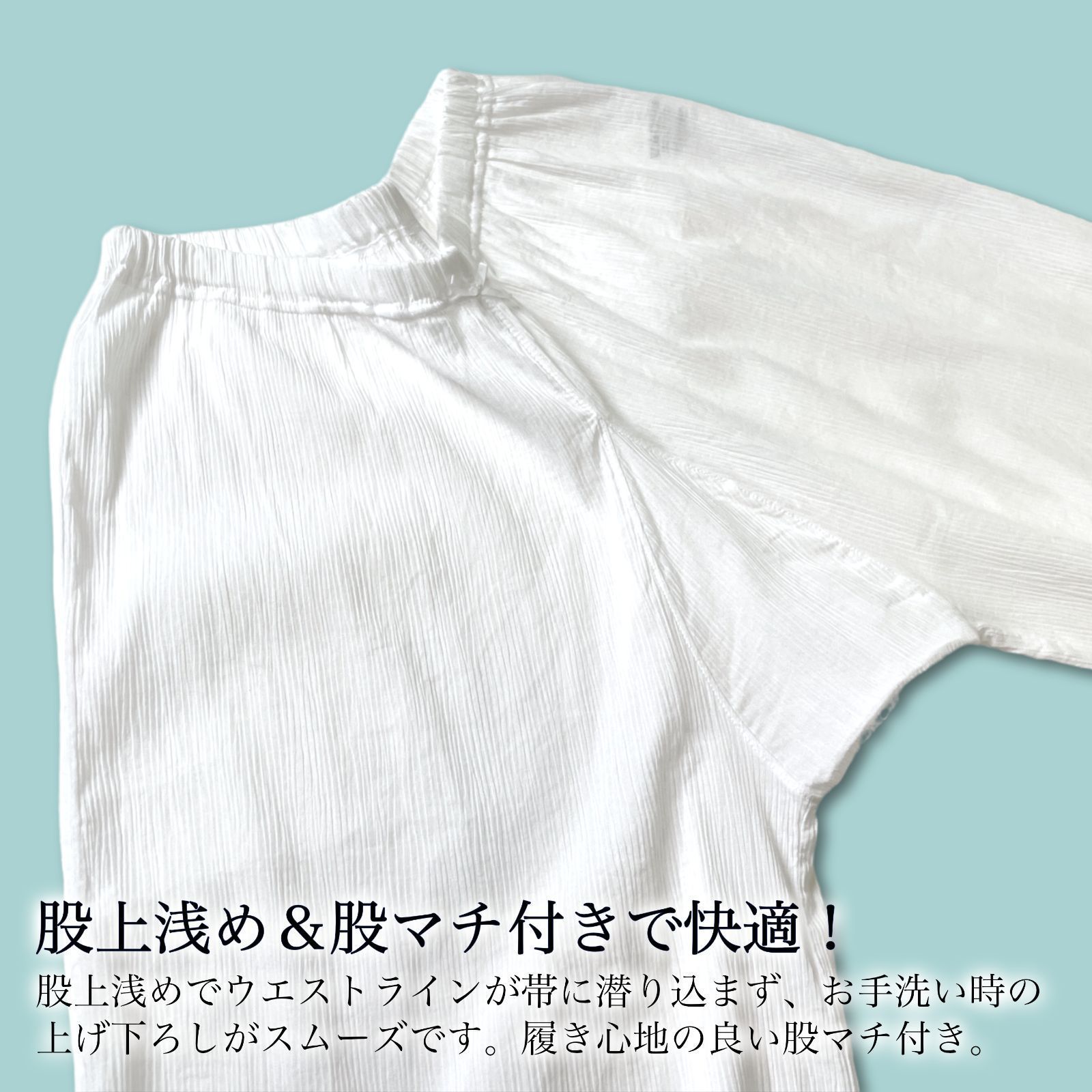 ・股上浅めでウエストラインが帯に潜り込まず、お手洗い時の上げ下ろしがスムーズです。