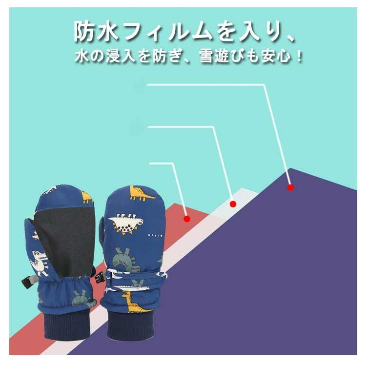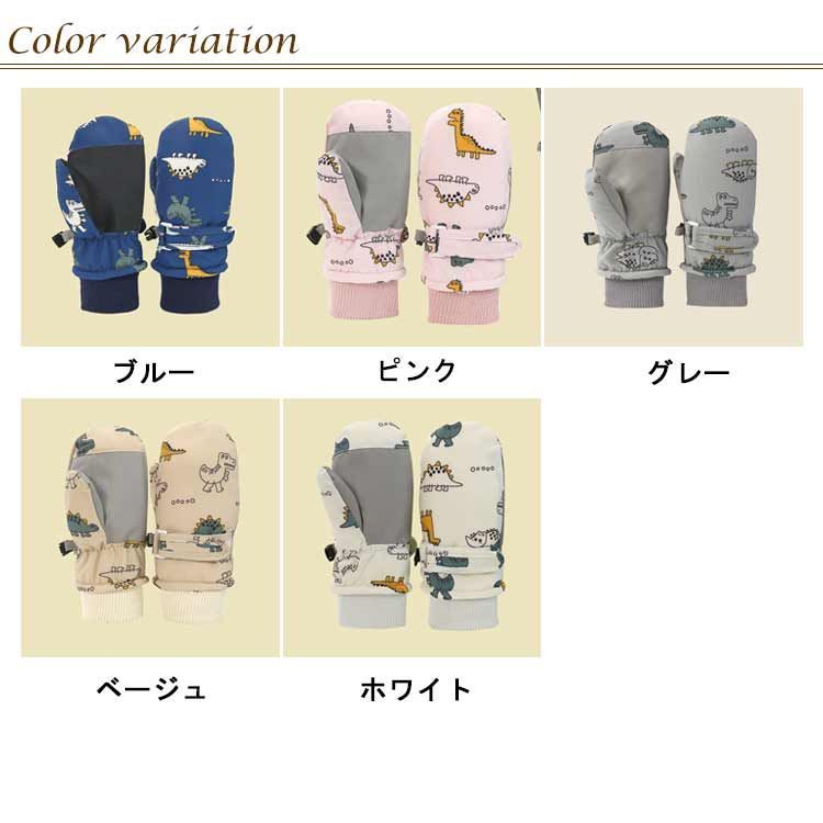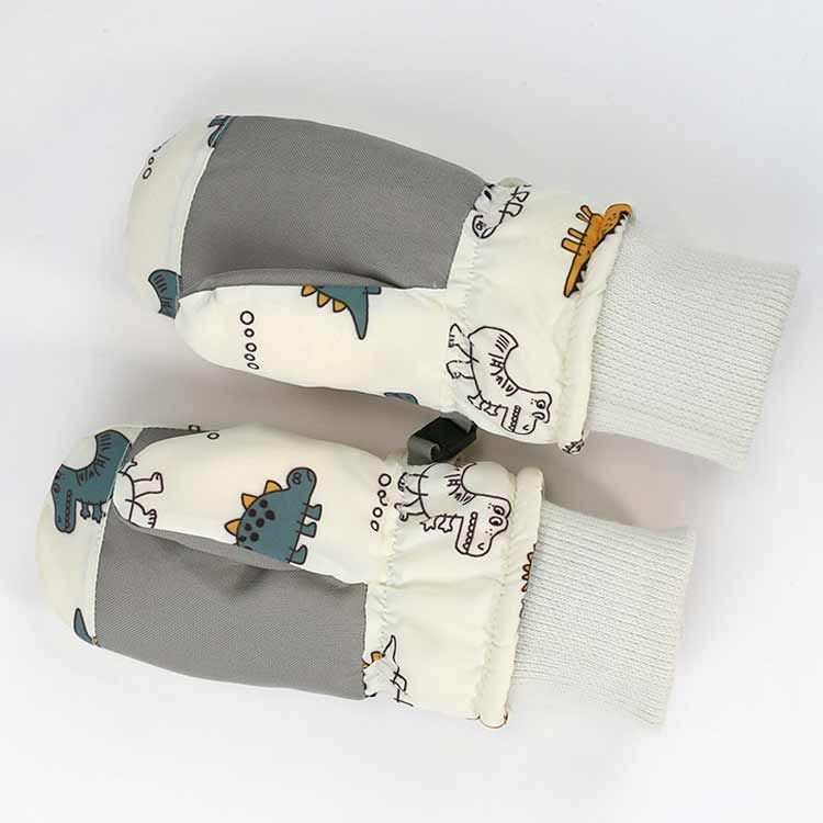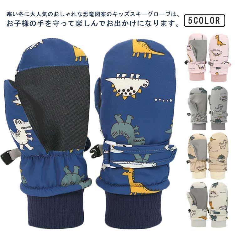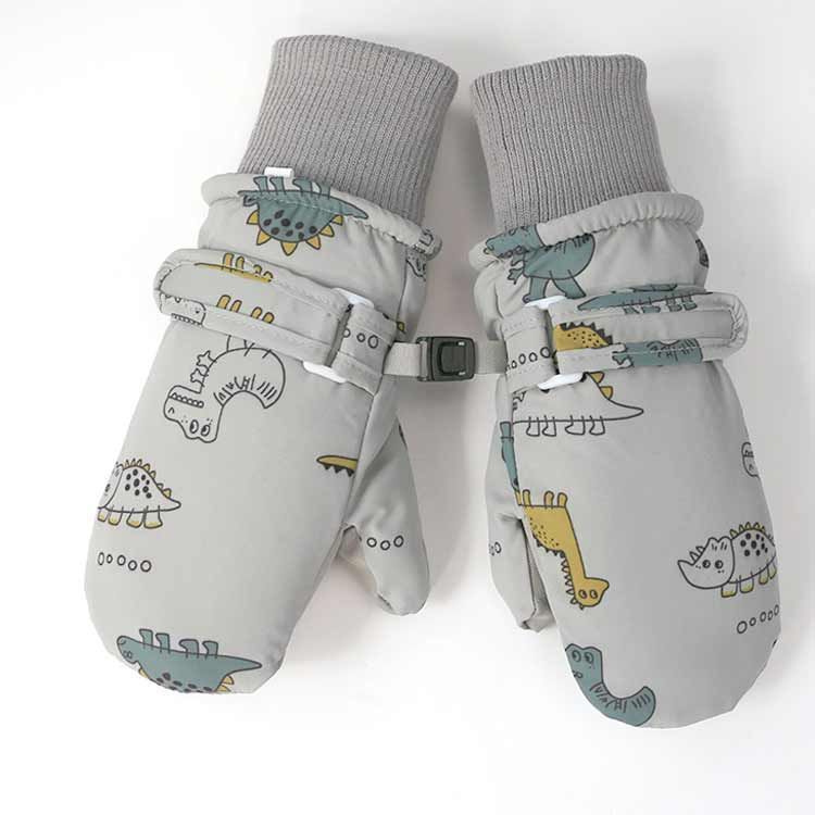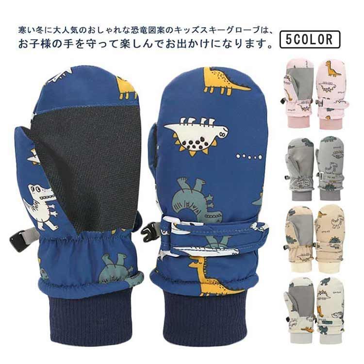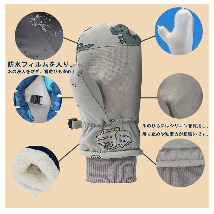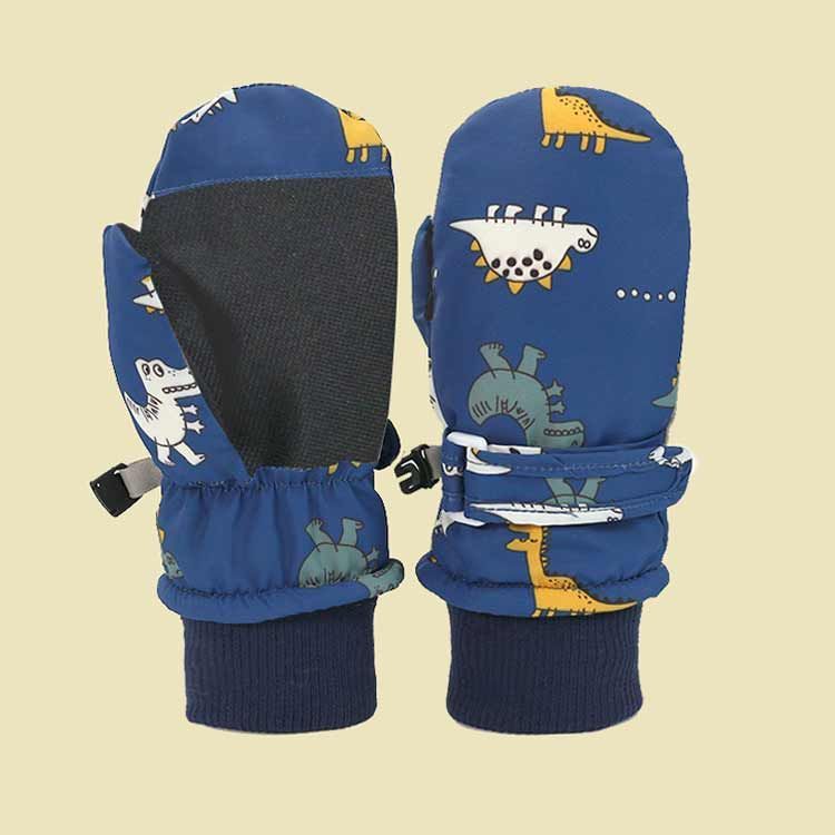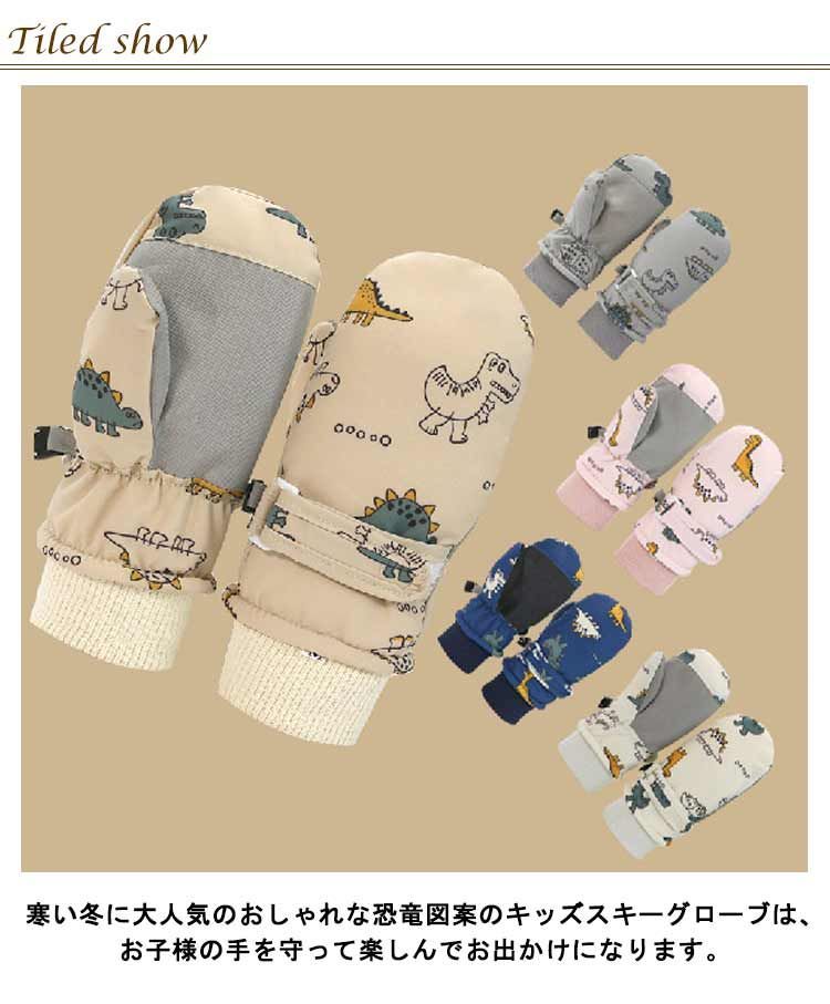 寒い冬に大人気のおしゃれな恐竜図案のキッズスキーグローブは、お子様の手を守って楽しんでお出かけになります。
