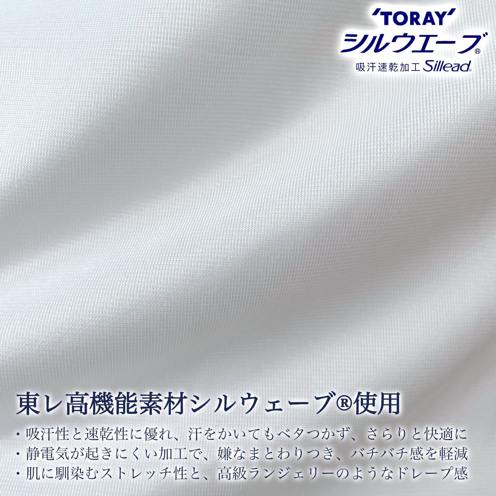 ・『東レ シルリードR?』加工が施されており、吸汗性と速乾性に優れ、汗をかいてもベタつかず、さらりと快適
