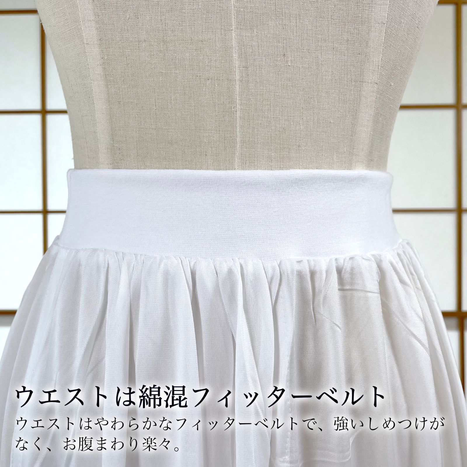 高機能素材、『東レ シルウェーブ®︎』が使用された、こだわりのスカート型の裾除け、着物ペチコートです。