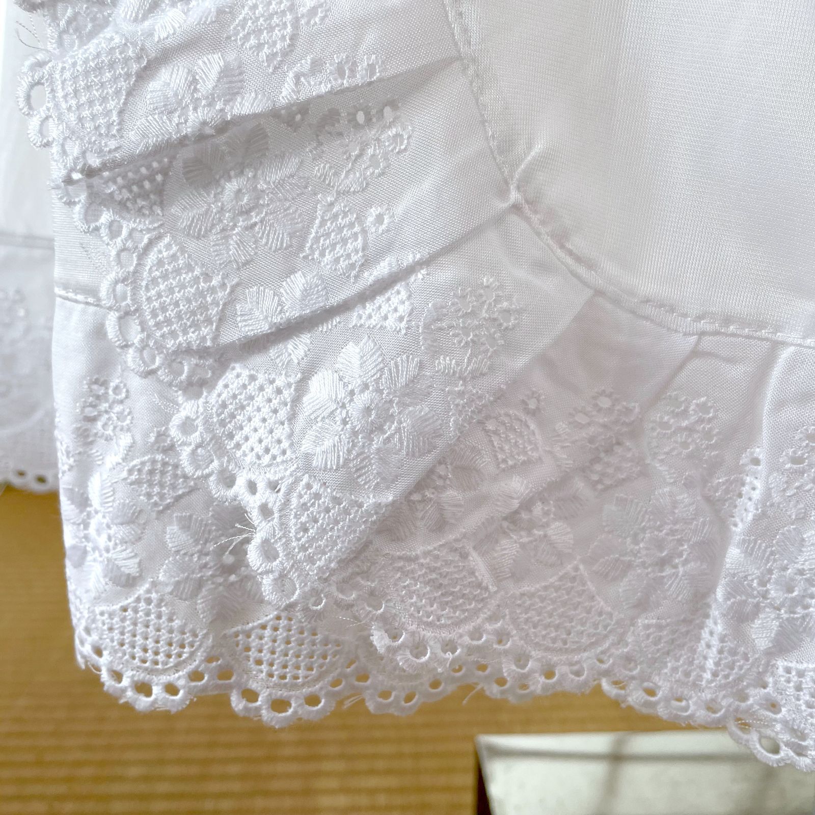 ・裾まわりは可愛らしいキュプラレース仕様