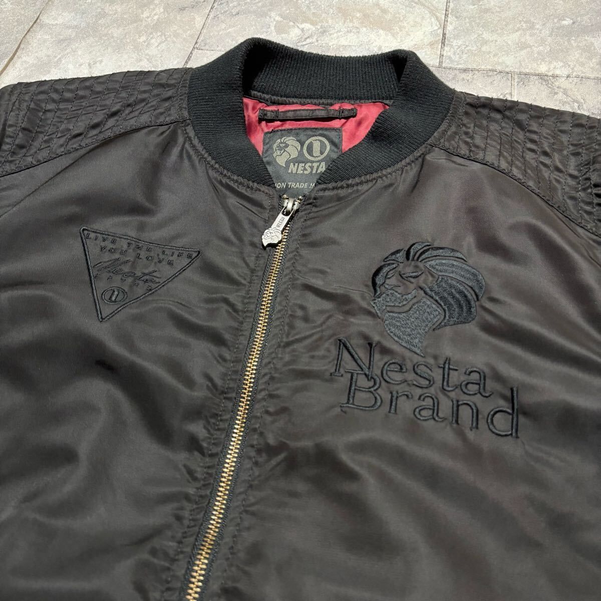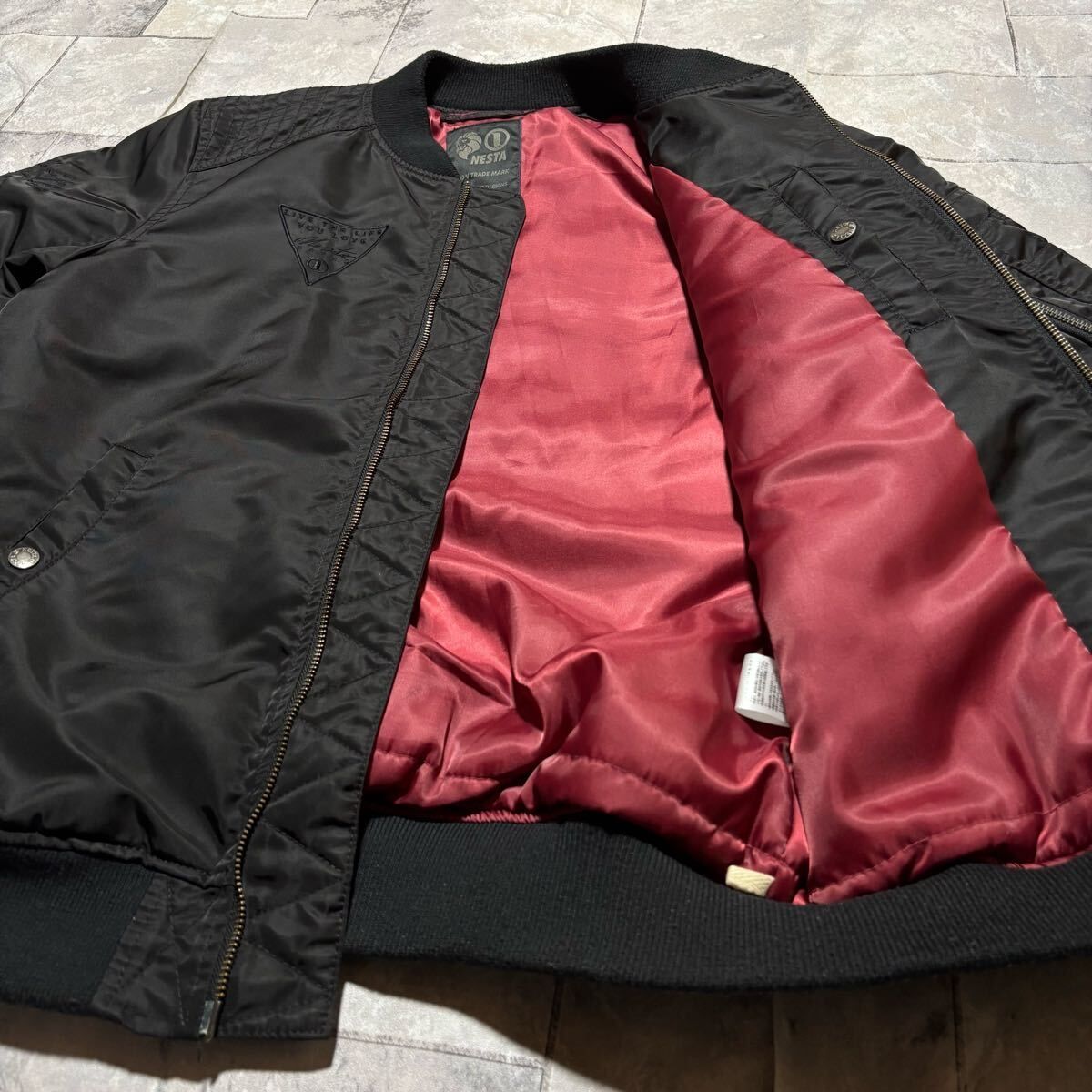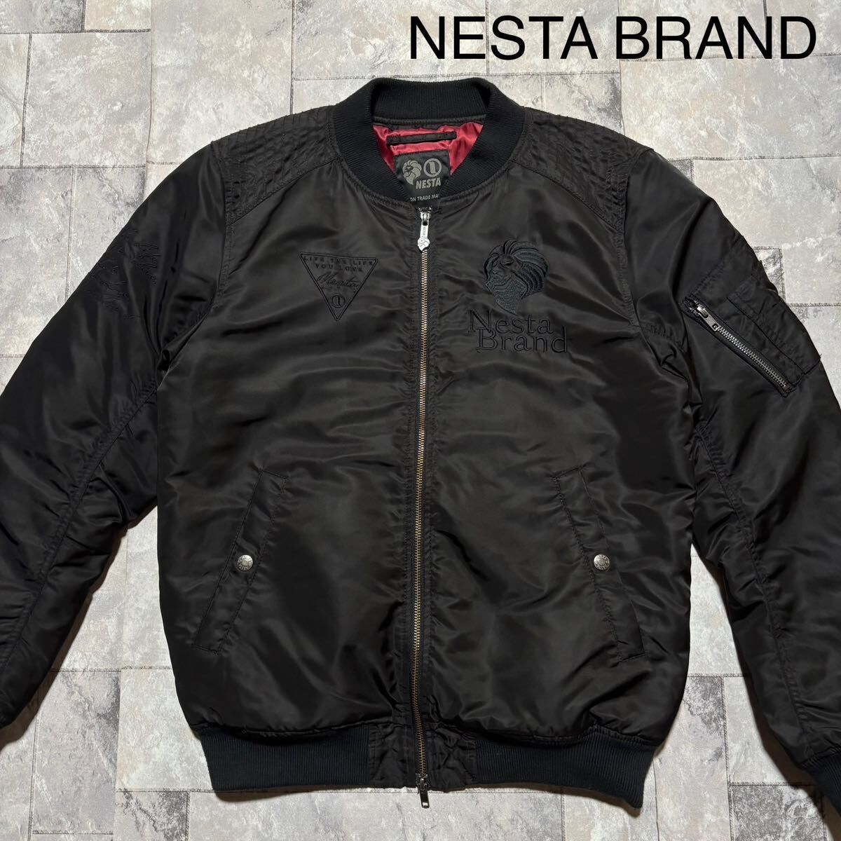NESTA BRAND ネスタブランド MA1 ナイロンジャケット ダブルジップ ストリート フライトジャケット 刺繍ロゴ ブラック サイズM 玉FS1747