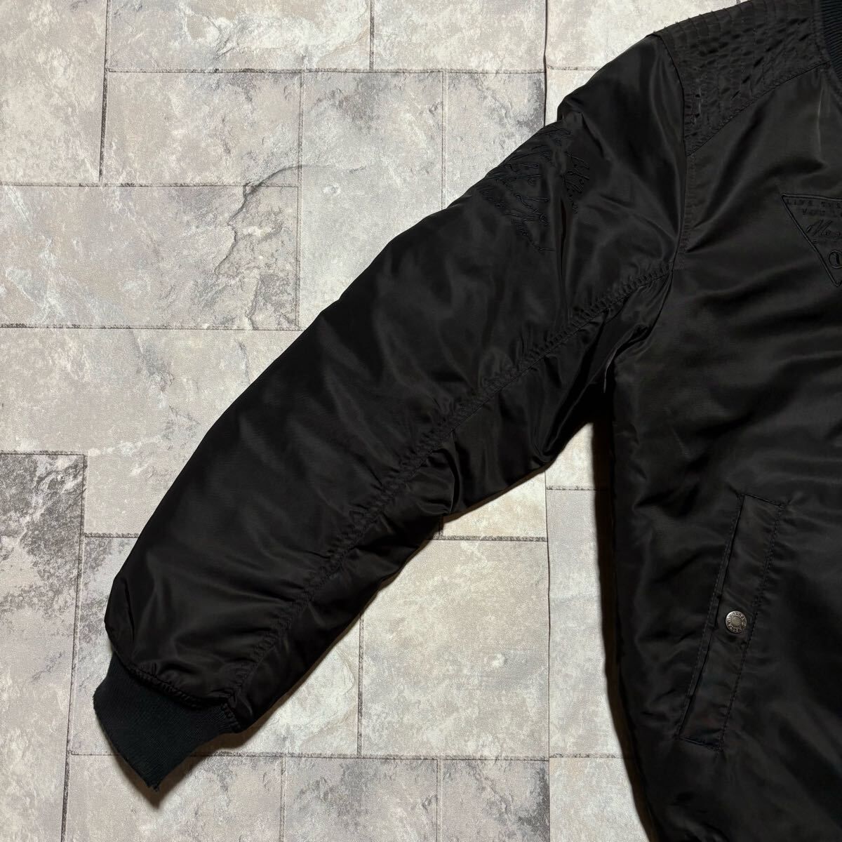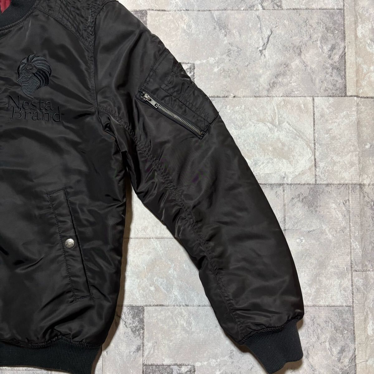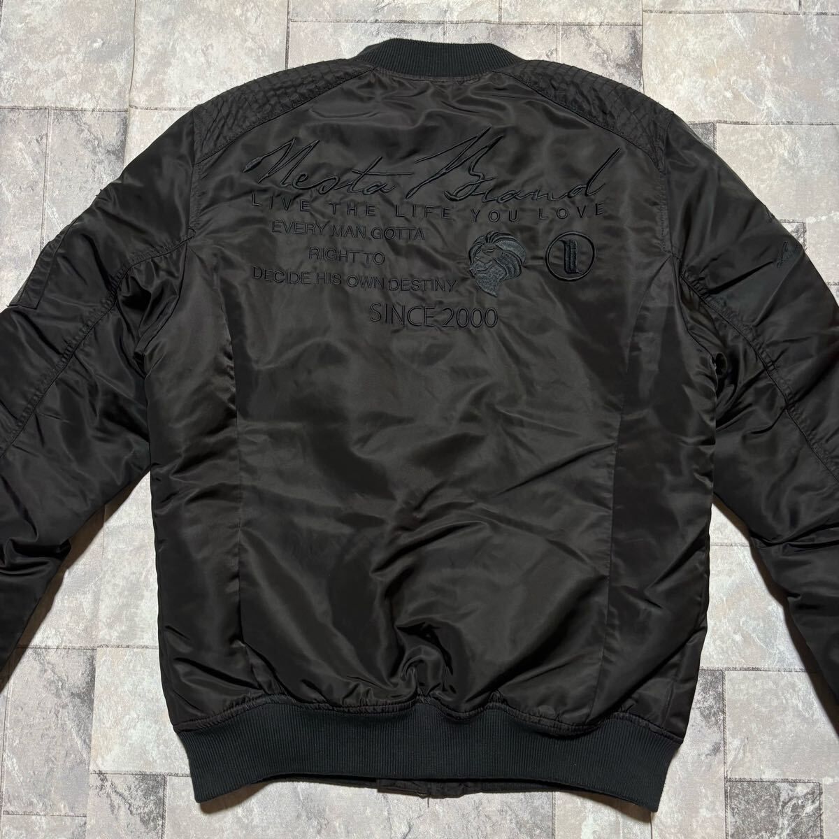 NESTA BRAND ネスタブランド MA1 ナイロンジャケット ダブルジップ ストリート フライトジャケット 刺繍ロゴ ブラック サイズM 玉FS1747