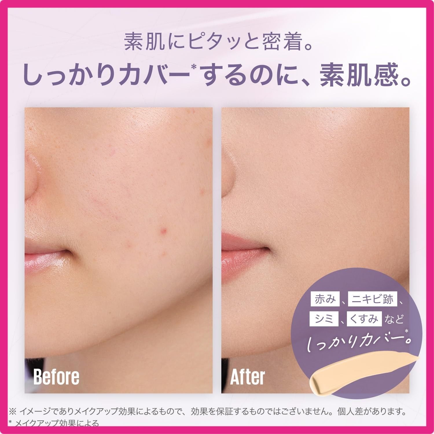 ■赤み、シミ、くすみなどの気になる部分をしっかりカバー*2するのに、超うす膜だから、素肌にとけ込むような仕上がり。