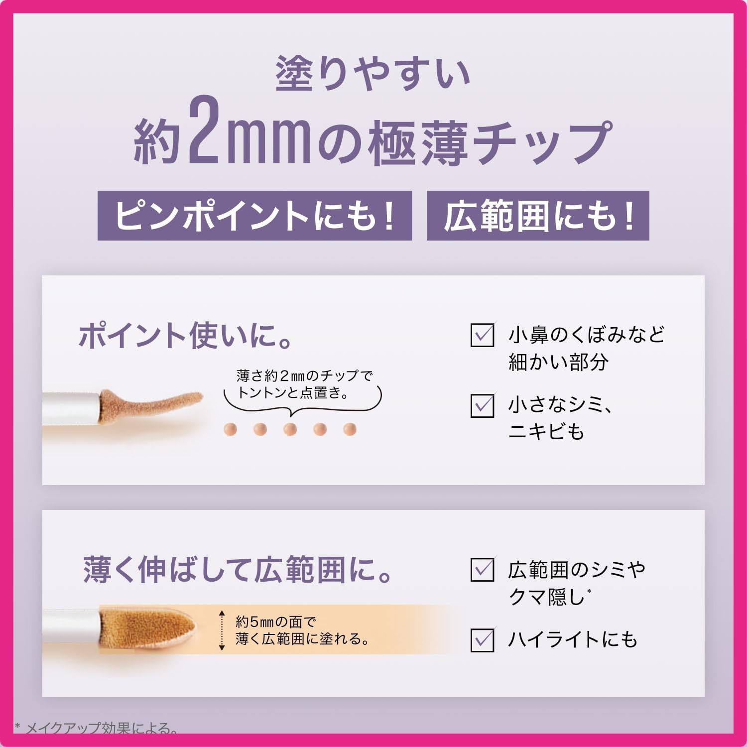 ■約2mmの極薄チップで、ピンポイントにも、広範囲にも、自在に塗りやすい。