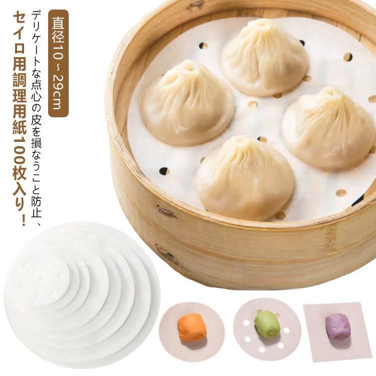 デリケートな点心の皮を損なうこと防止、セイロ用調理用紙100枚入り!