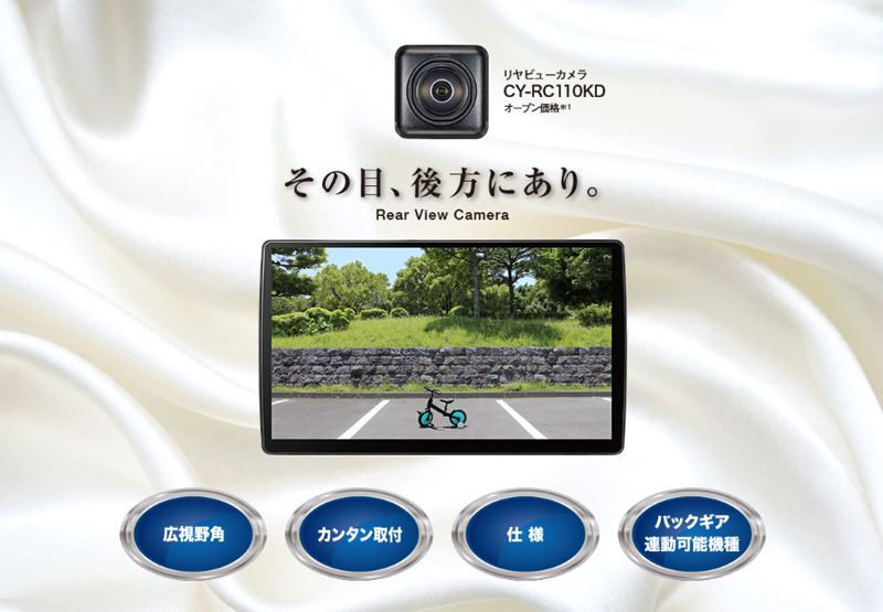 高精細HD液晶を搭載。業界最多540車種以上に装着できる振り向く9V型大画面ストラーダと、後退時の後方確認に欠かせないバックカメラのセットです。